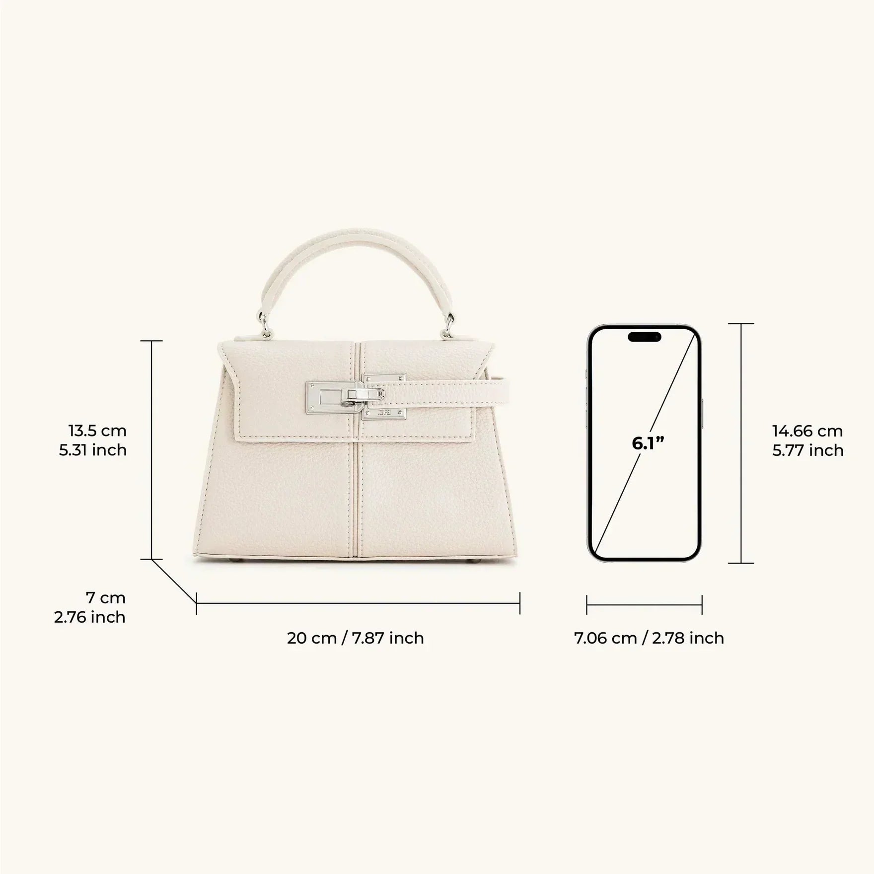 Le sac à main Isla Top Handle Bag est une expression de luxe moderne, caractérisé par une silhouette unique en spirale inspirée d'un moulin à vent, fabriqué en simili cuir vegan doux et de haute qualité. La poignée supérieure innovante, élégamment reliée par une connexion cachée, tombe naturellement lorsque vous utilisez la bandoulière, offrant polyvalence et une transformation facile entre un sac à main et un sac à bandoulière.