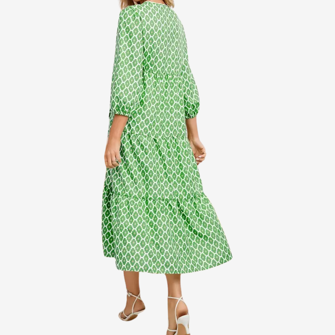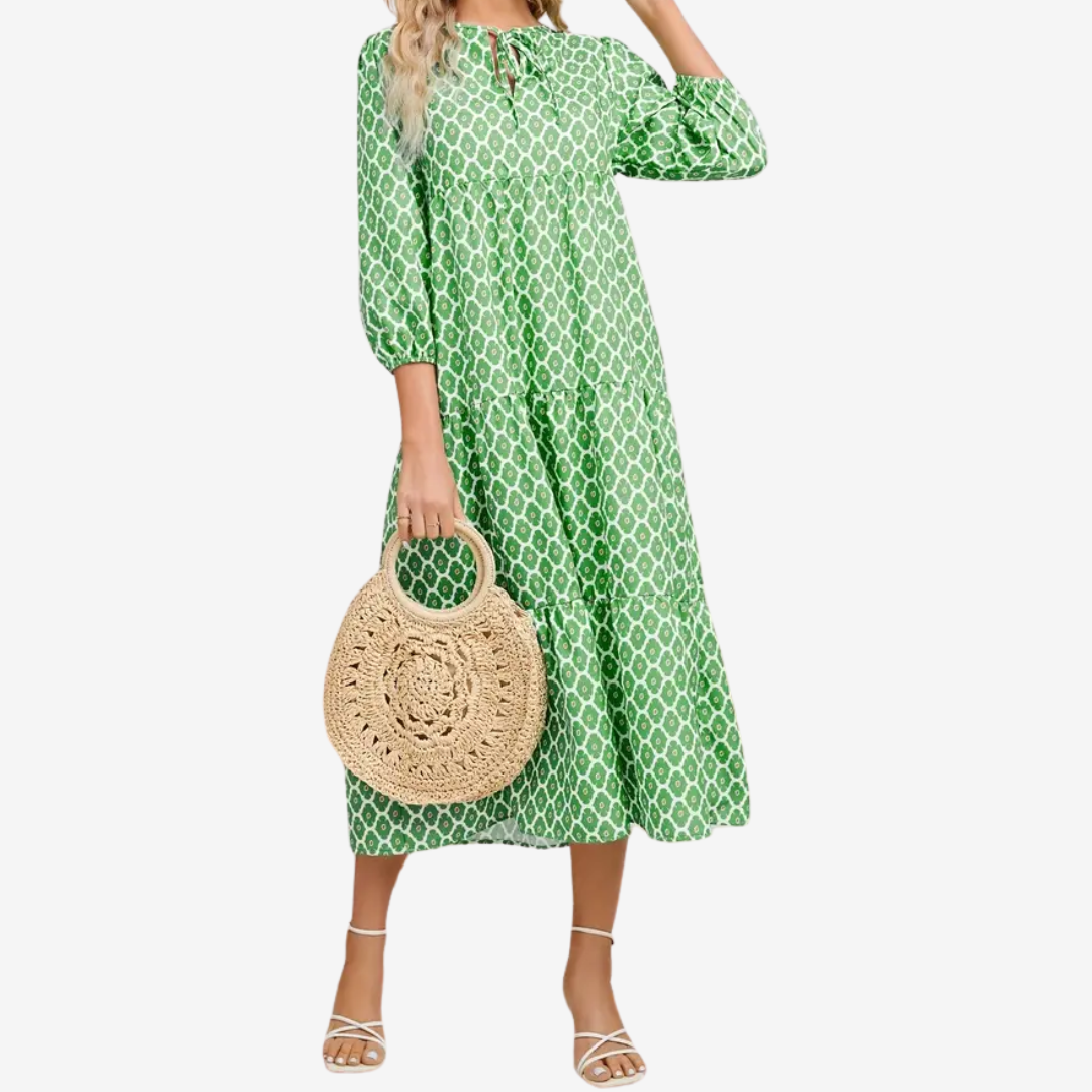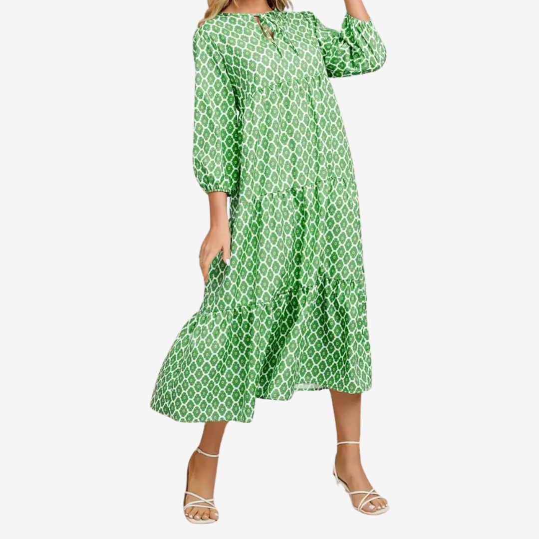 Le La robe Maëva ™ allie fluidité et liberté. Cette robe longue verte arbore une silhouette décontractée avec une taille légèrement froncée qui flatte votre silhouette sans la serrer. Confectionnée dans un tissu doux et respirant, elle accompagne vos mouvements et offre un drapé élégant. Ses manches longues et son décolleté discret en font le choix idéal pour toutes vos envies, des week-ends tranquilles aux courses élégantes du quotidien.