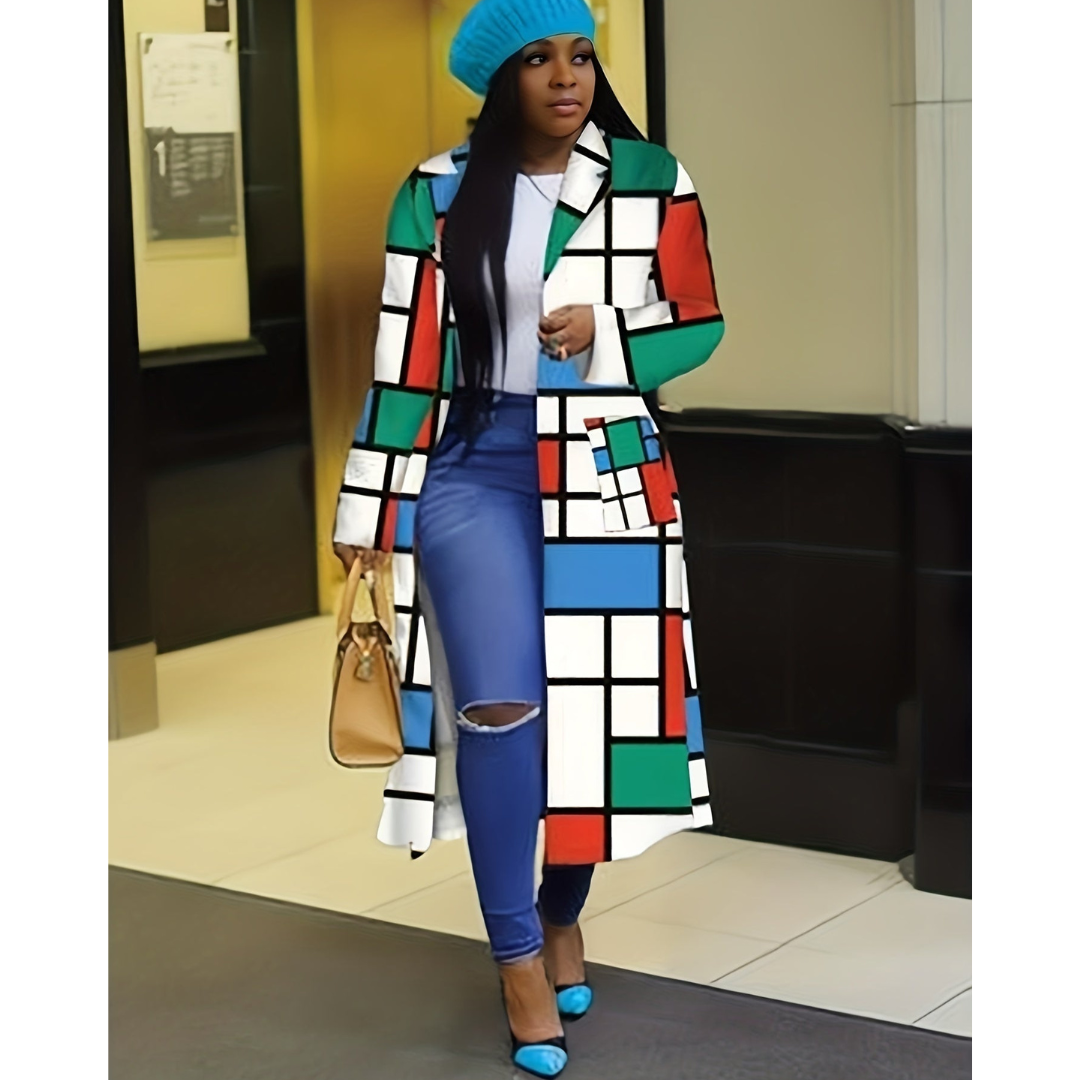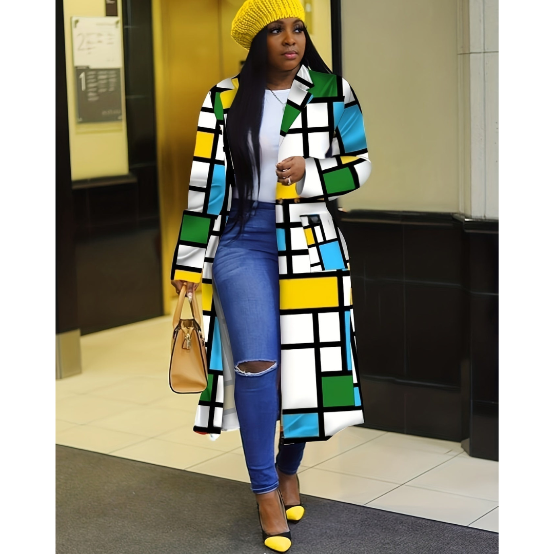 Restez au chaud et élégante avec un manteau qui allie modernité et chaleur exceptionnelle. Le manteau long en patchwork à carreaux Kyrsten est conçu pour vous garder stylée même par temps glacial. Avec son design unique et sa coupe raffinée, il est l’essentiel incontournable d’une garde-robe sophistiquée pour l’hiver.