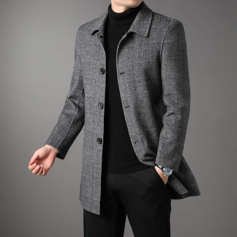 Confectionné à partir de laine de qualité supérieure, ce manteau est conçu pour imposer. Sa coupe structurée, son motif à carreaux raffiné et ses détails nets en font la couche ultime de puissance. Que vous assistiez à une réunion d'affaires ou que vous sortiez le soir, ce manteau assure une présence incontestée.
