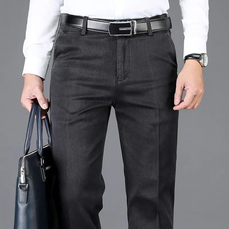 Le denim de haute qualité rencontre le style classe affaires. Conçus à la fois pour des tenues formelles et décontractées, ces pantalons offrent une allure nette et soignée avec une coupe slim et une légère élasticité pour un confort tout au long de la journée.