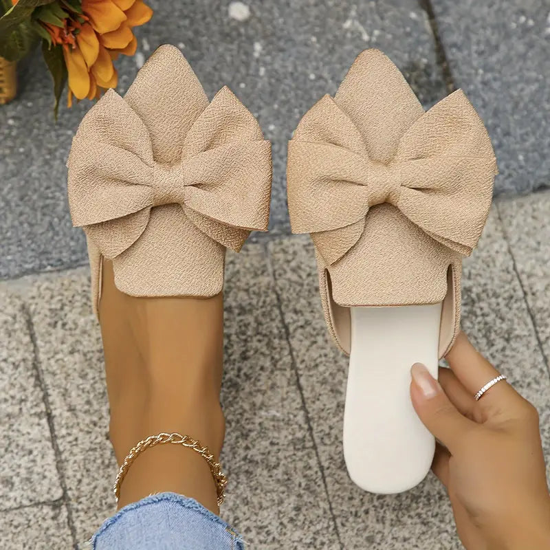 Mules Femme Dani – Chaussons Plates Élégants à Bout Pointu avec Nœud pour un Confort Quotidien