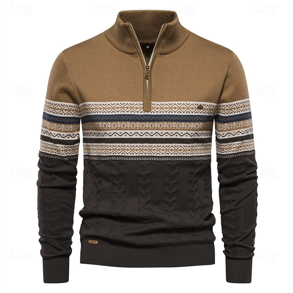 Enjoy the warmth and style of this half-zip knit sweater. Ideal for cool days or as a chic addition to your wardrobe, this sweater offers a harmonious blend of classic design and modern functionality.