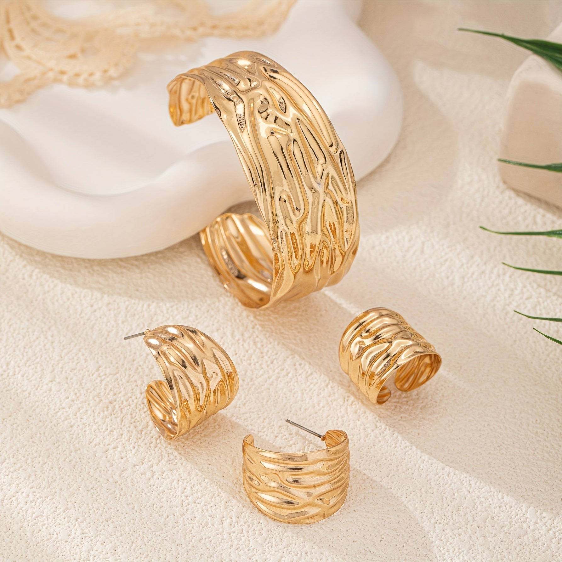Parure bracelet, boucles d’oreilles et bague en or 18K martelé