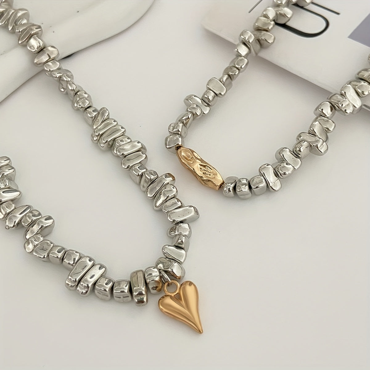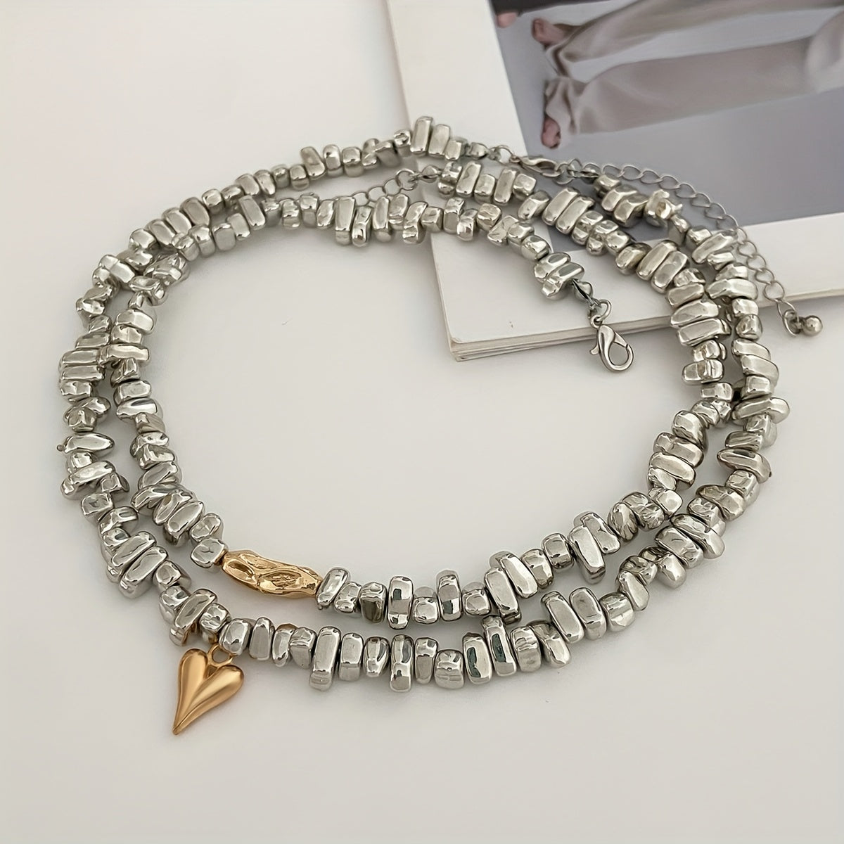 Parure de 2 colliers en pierres argentées avec accents en or 18K
