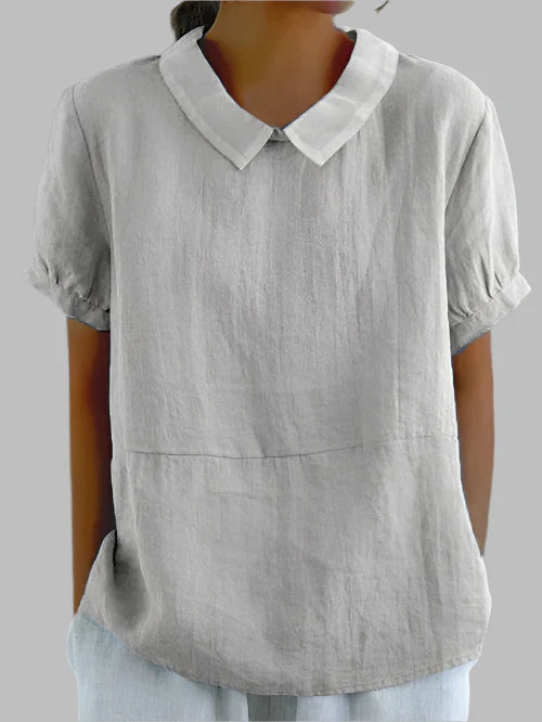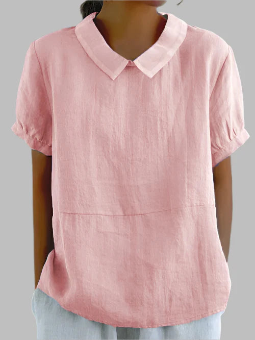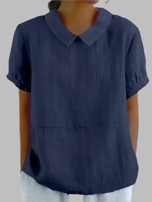 Pomeline | Blouse Ample à Manches Courtes pour Femmes avec Col – Effet Coton et Lin