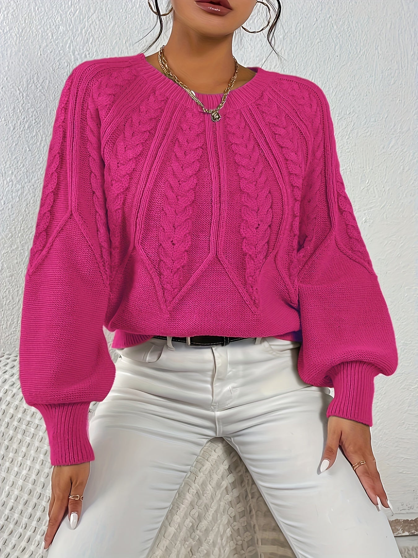 Pull à Col Ras du Cou en Maille Torsadée pour Femmes