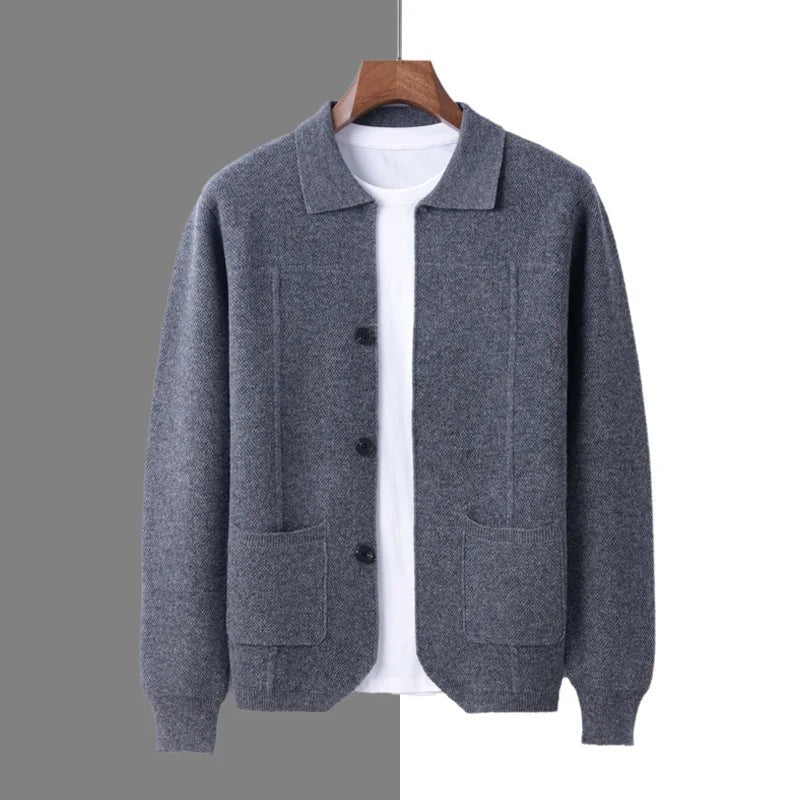 Ce pull ajusté, conçu pour épouser parfaitement le torse, est doté d'un col polo et de poignets côtelés, offrant de la chaleur sans encombrement. Fabriqué en laine Merino douce et respirante, il est polyvalent et se superpose facilement grâce à sa fermeture à boutons.