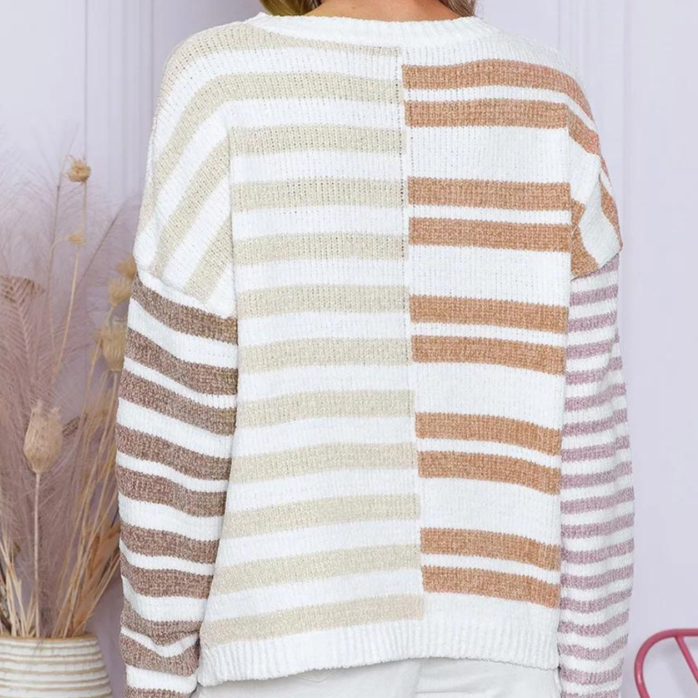 Pull Rayé à Col Rond pour Femmes