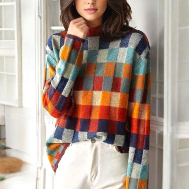 Ajoutez une touche de couleur et de chaleur à votre garde-robe avec ce pull tricoté à carreaux coloré. Son col haut enveloppant et sa coupe confortable et ajustée offrent à la fois style et chaleur pour l'automne et l'hiver. Son motif à carreaux apporte une touche dynamique et moderne, parfait pour un look tendance et décontracté.