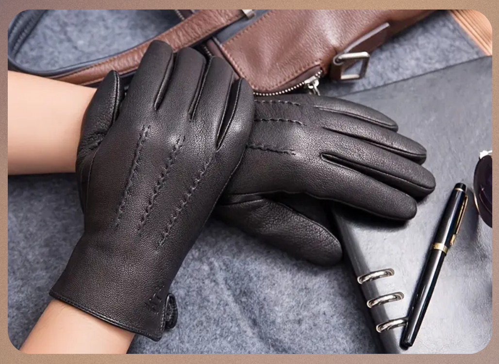 Raymond | Gants d’hiver en cuir de chèvre motif cerf