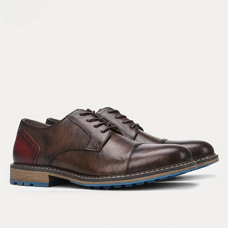 Ricky | Les chaussures derby marron pour hommes allient style, confort et praticité, ce qui en fait le choix parfait tant pour des occasions formelles que décontractées. Avec un design classique à lacets et une semelle en caoutchouc antidérapante et durable, ces chaussures sont conçues pour vous garder à l'aise et élégant tout au long de la journée.