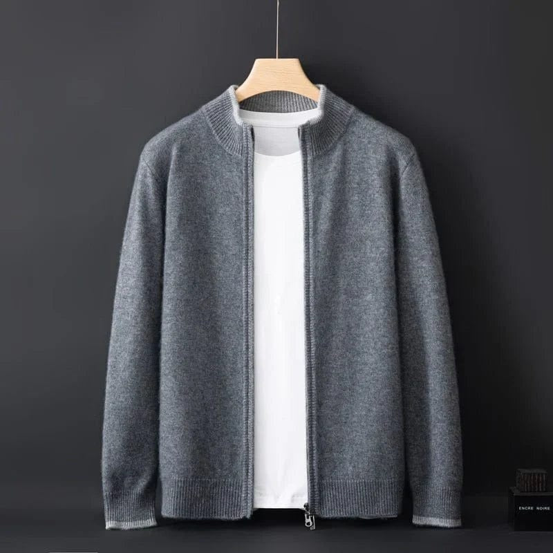 This zip-up jacket is made from 100% premium cashmere for unmatched softness and warmth. The luxurious cashmere feels incredibly soft against the skin, while fine knit details on the collar and cuffs add a subtle touch to the minimalist design.