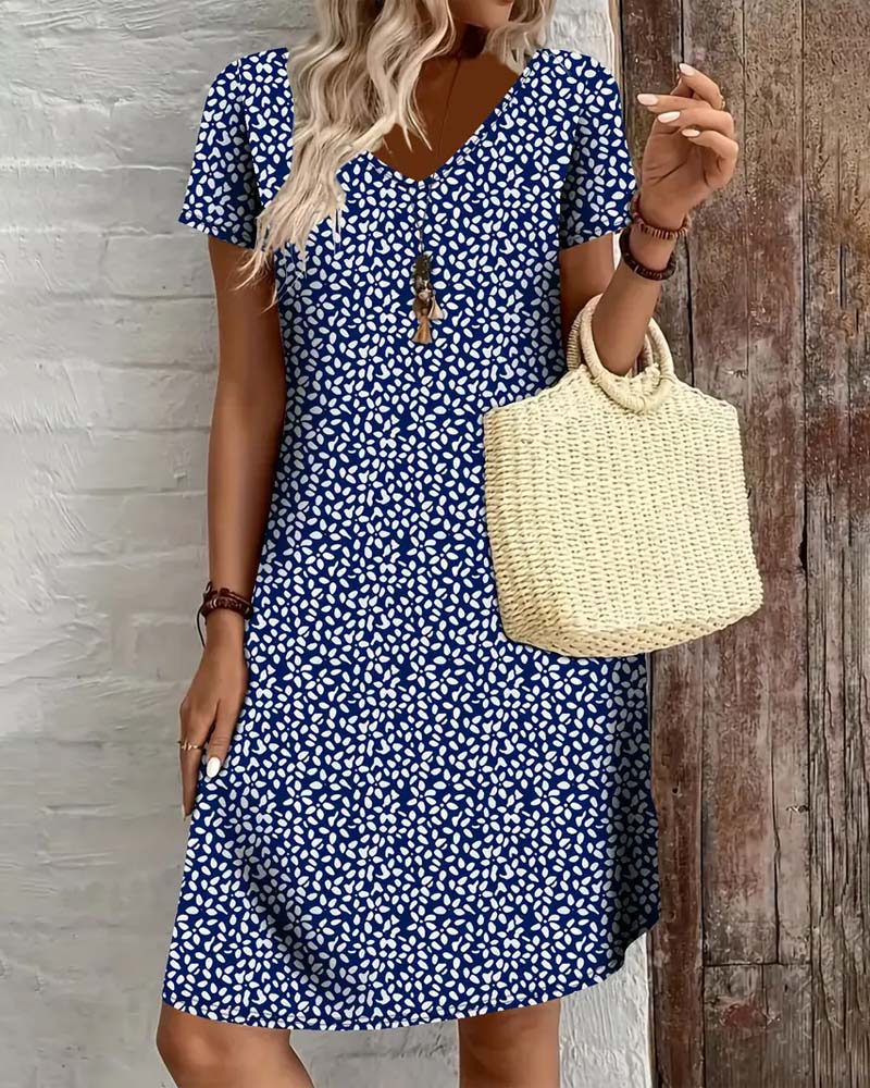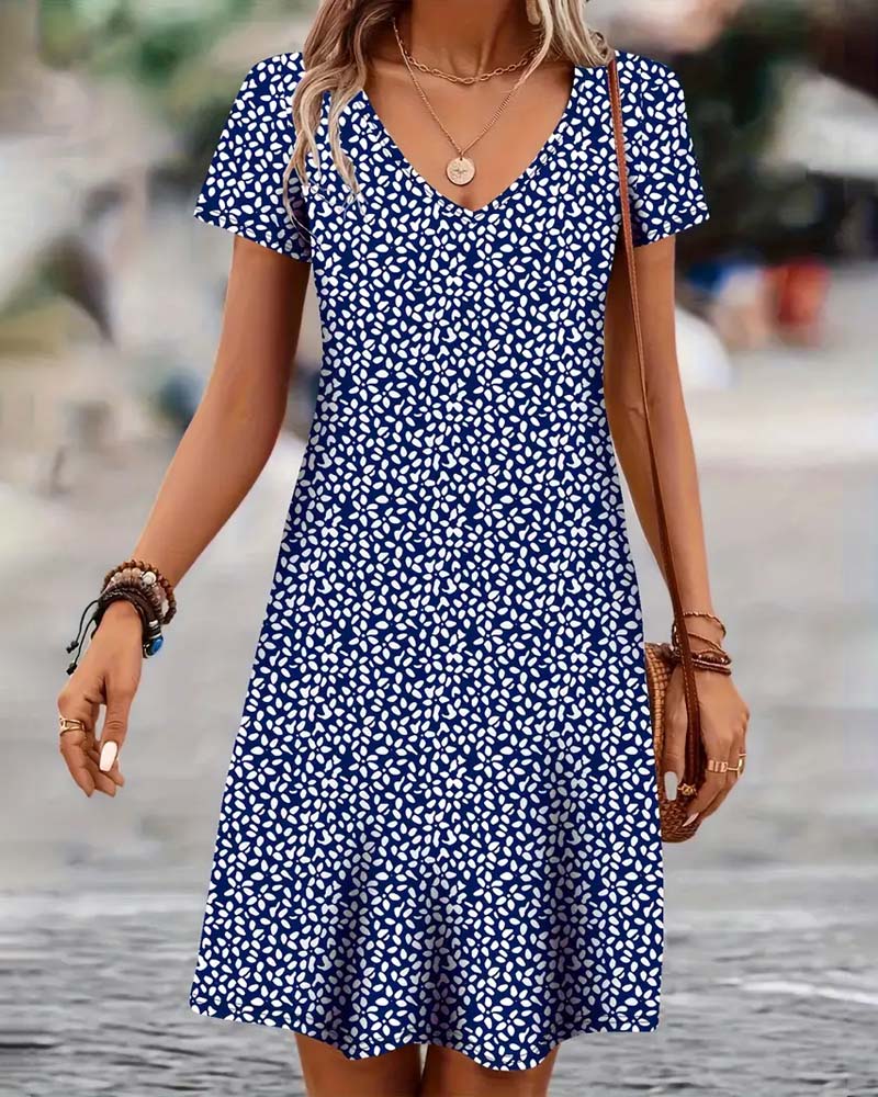 Robe Col En V Imprimé Floral Évasée