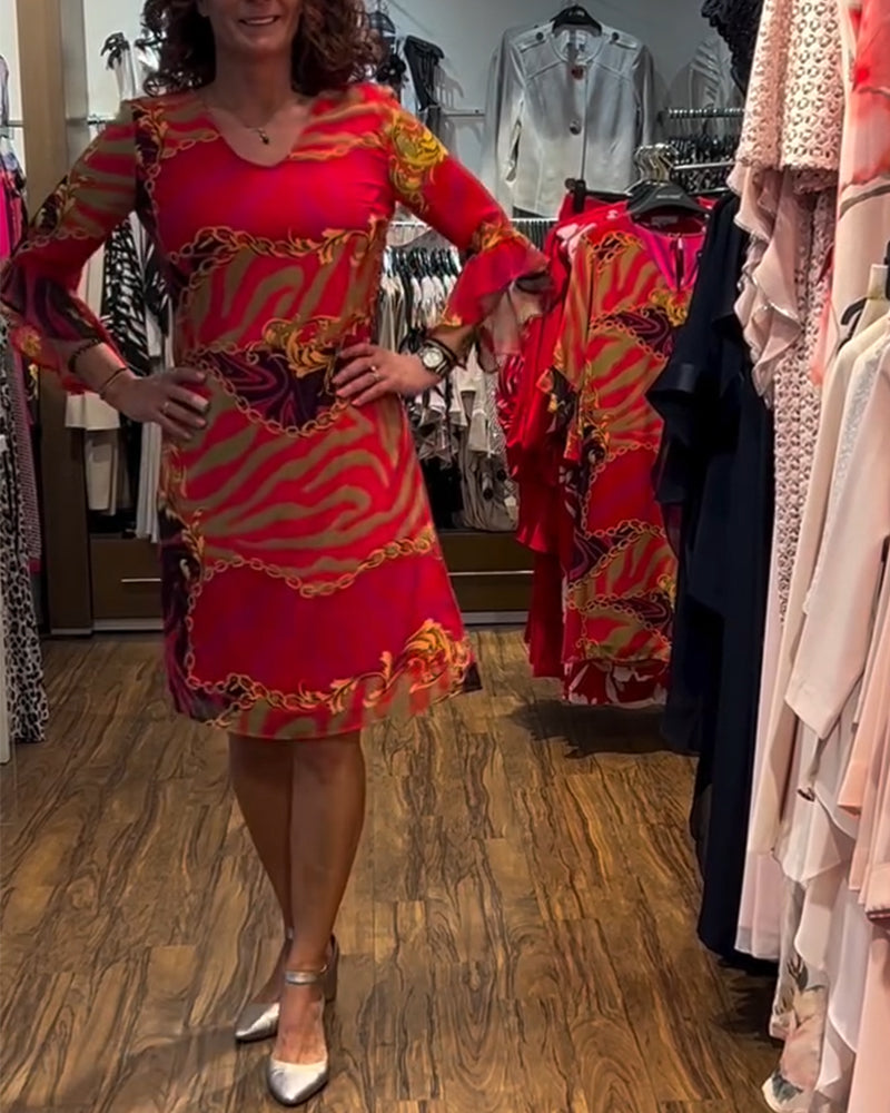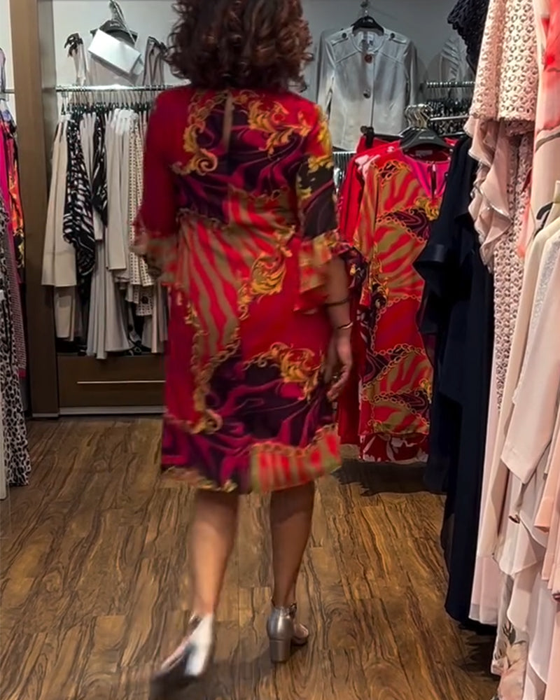 Robe Col Rond Manches À Volants Imprimée