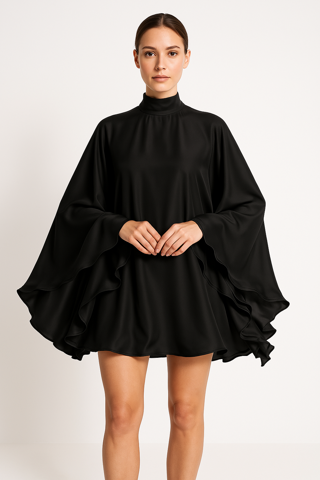 Robe courte femme – Coupe fluide – Col montant – Manches volantées élégantes