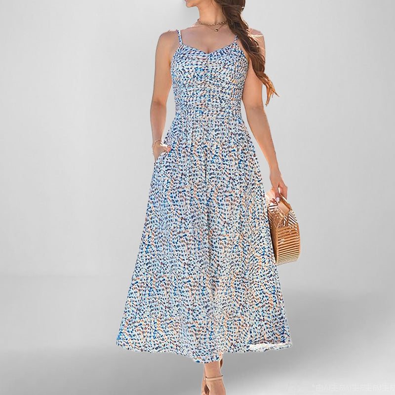 • Design: Coupe évasée avec bretelles fines et ruchés décoratifs