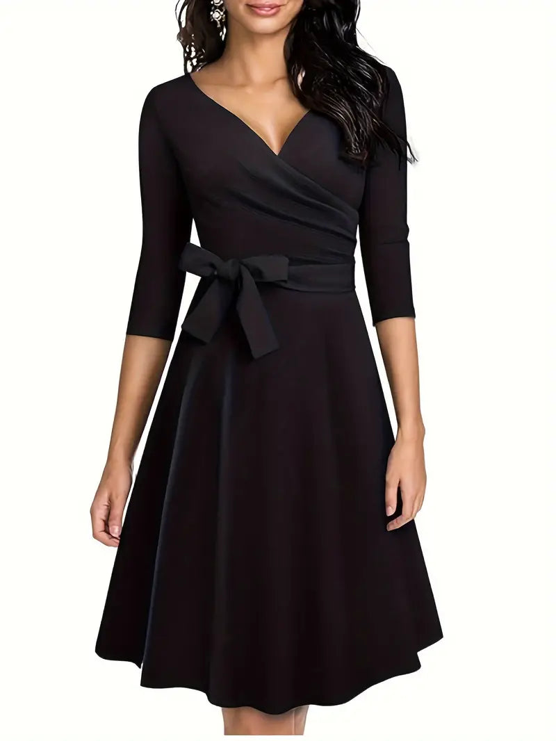 Robe d'Été Femme Maya – Robe Évasée Unie avec Manches 3/4 & Coupe Élégante pour l'Été