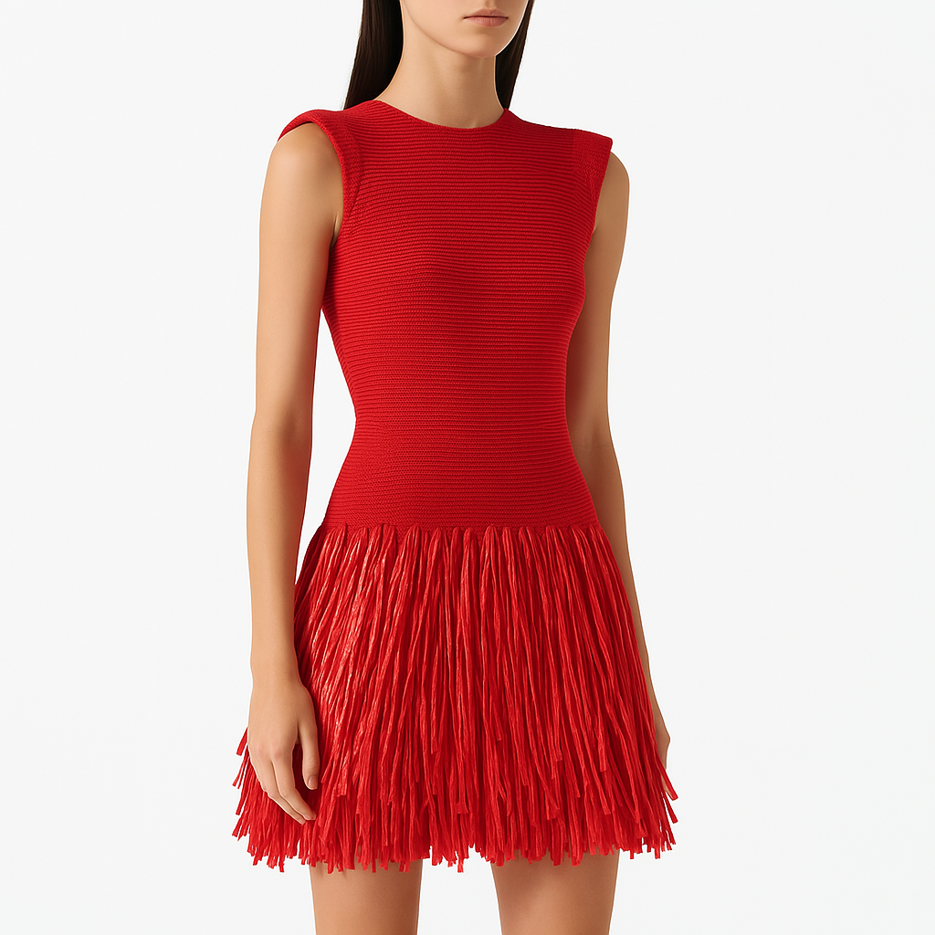 - Design: Coupe moulante avec jupe à franges tendance