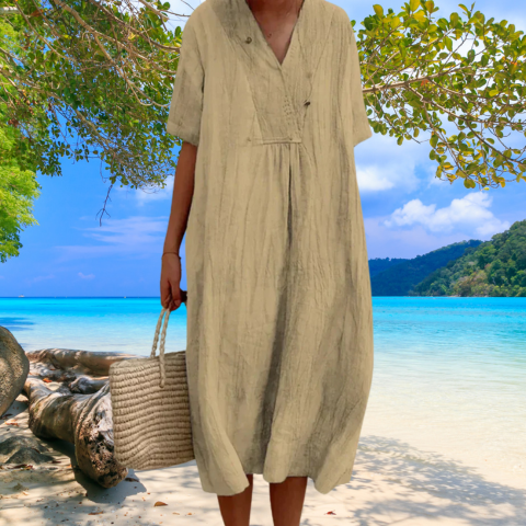 Robe Élégante en Lin et Coton pour Femme | Midi