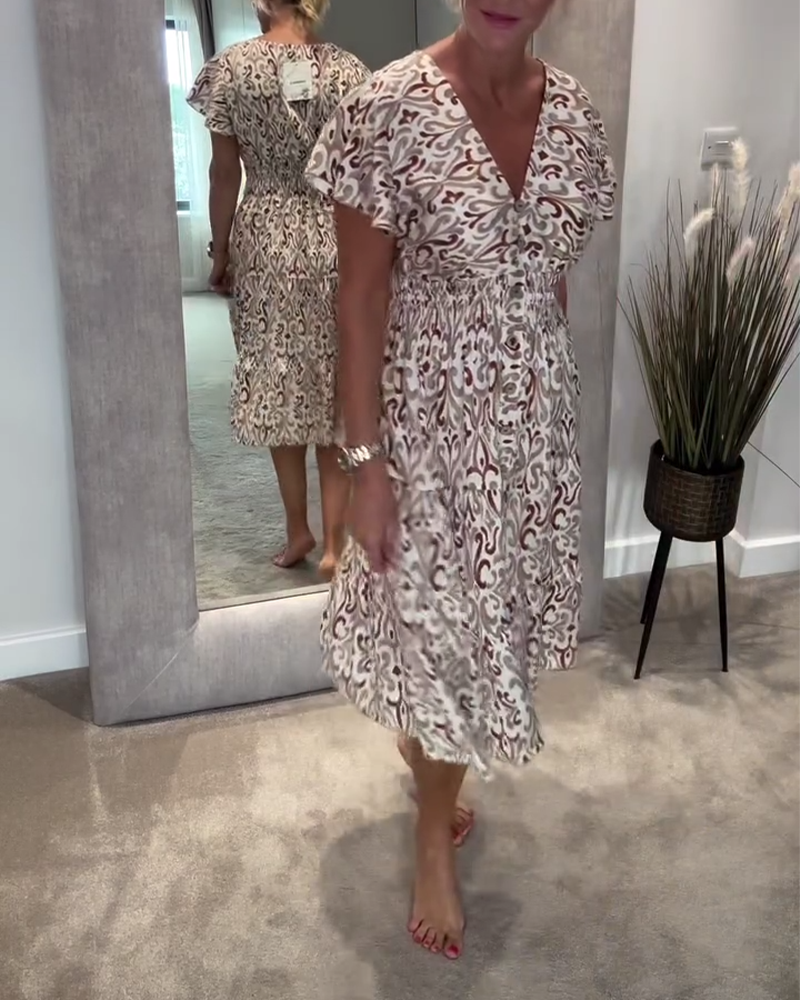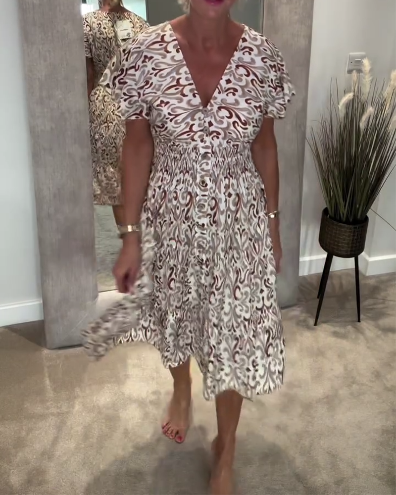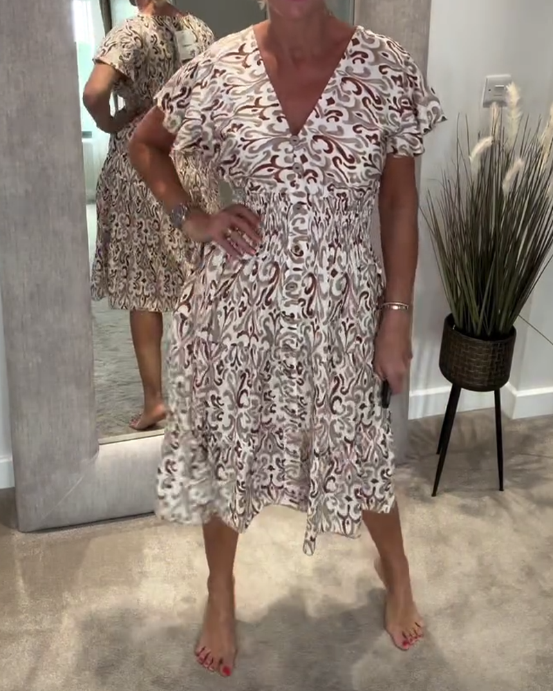 Robe En V Manches Feuille De Lotus Imprimée Taille
