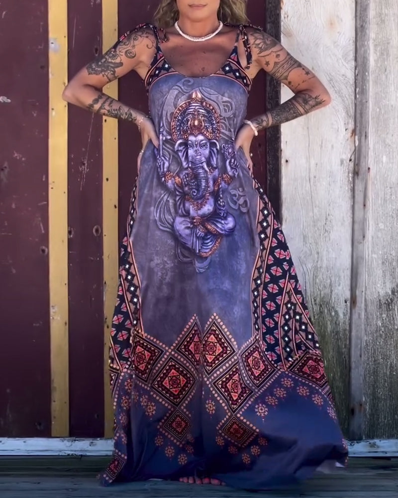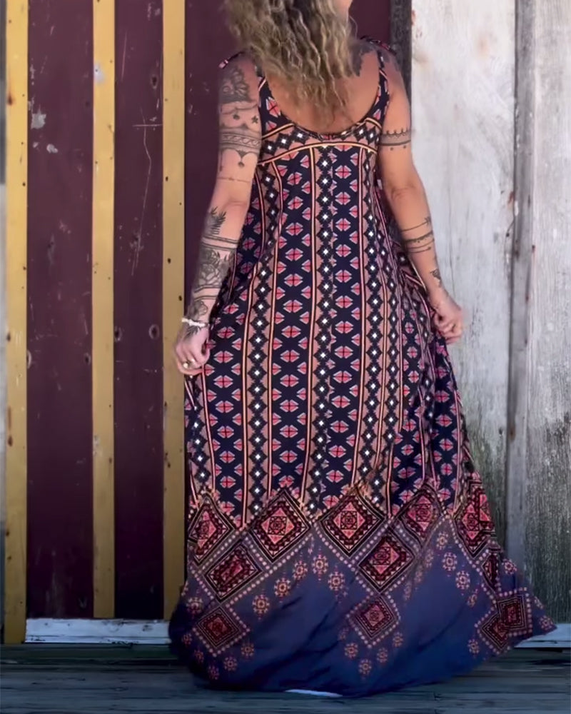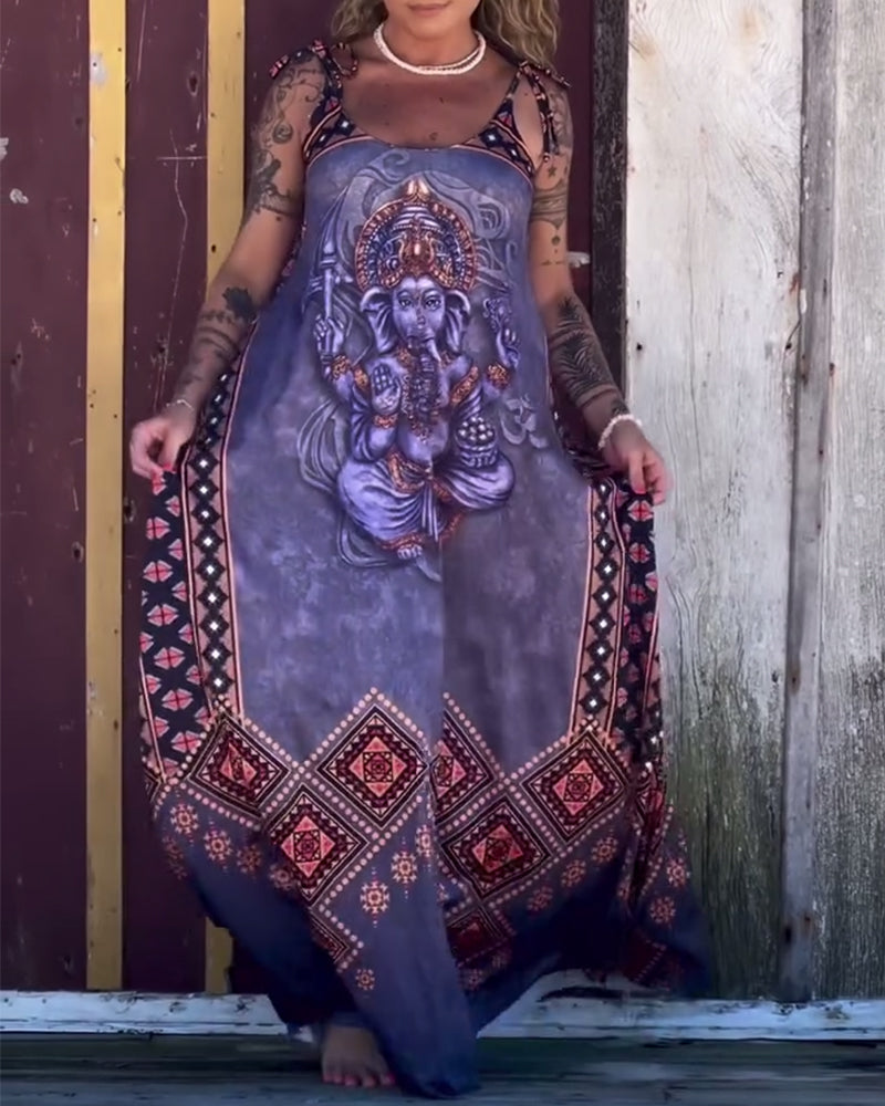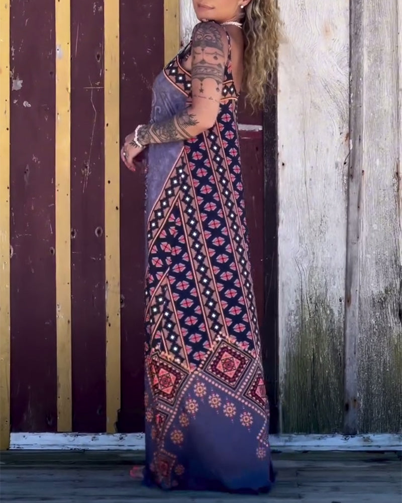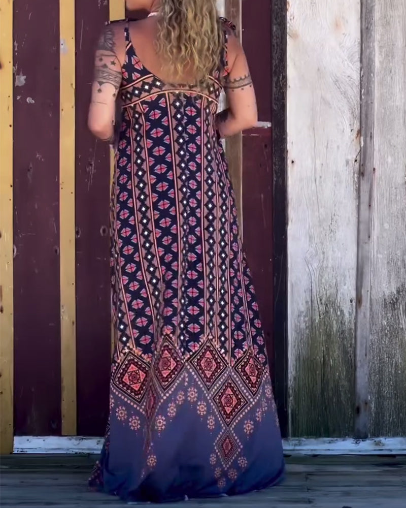 Robe Encolure En V Imprimé Rétro Bretelles