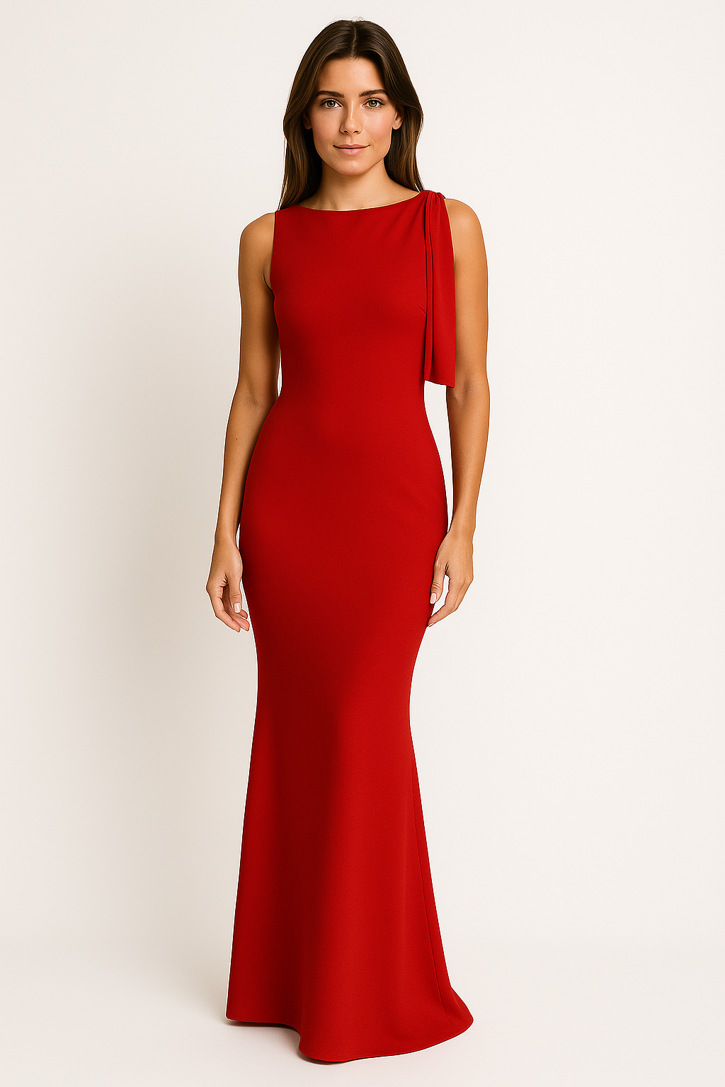 Robe Femme Épaule Dénudée – Coupe Ajustée – Longueur Maxi – Tissu Satiné Élégant