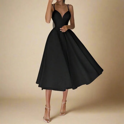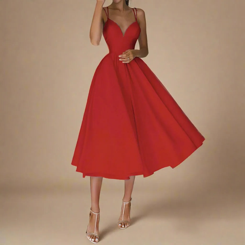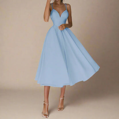 Robe Femme Kourtney – Élégance Estivale avec Décolleté en V et Bretelles Fines