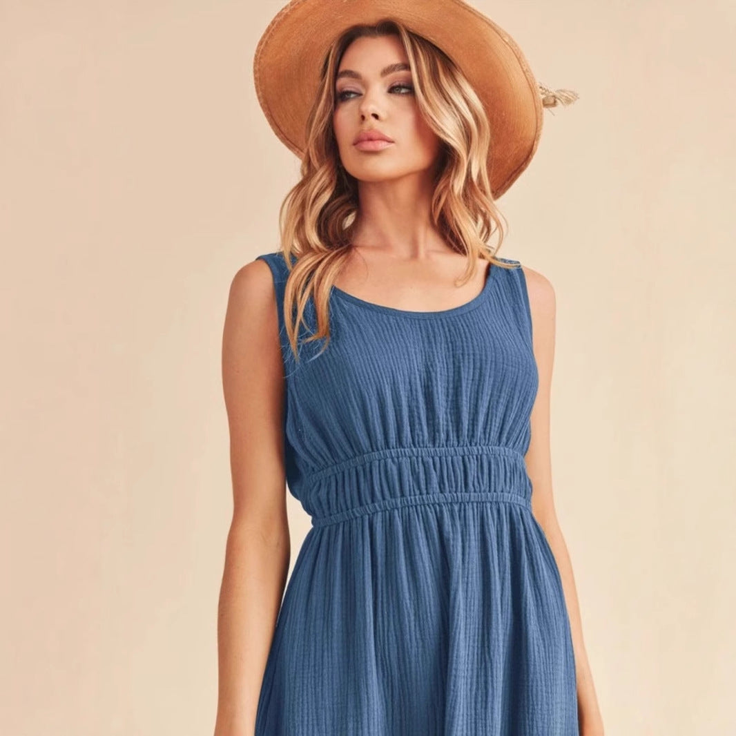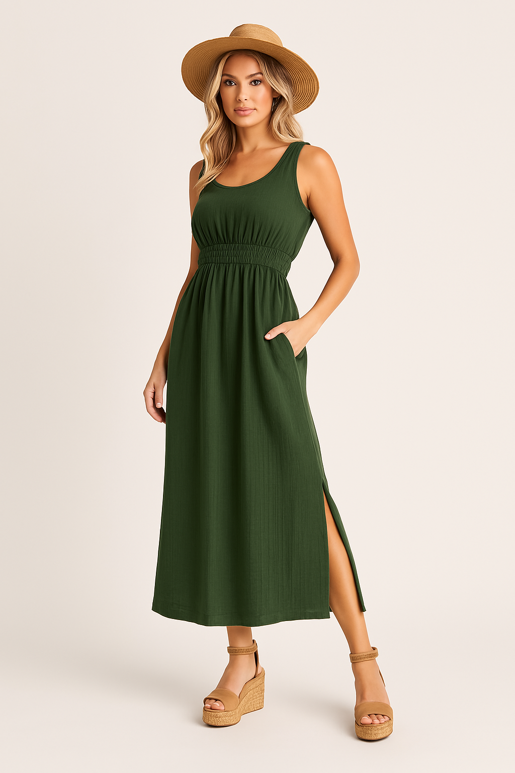 Robe Femme Midi – Coupe Évasée – Sans Manches – Taille Cintrée – Tissu Respirant