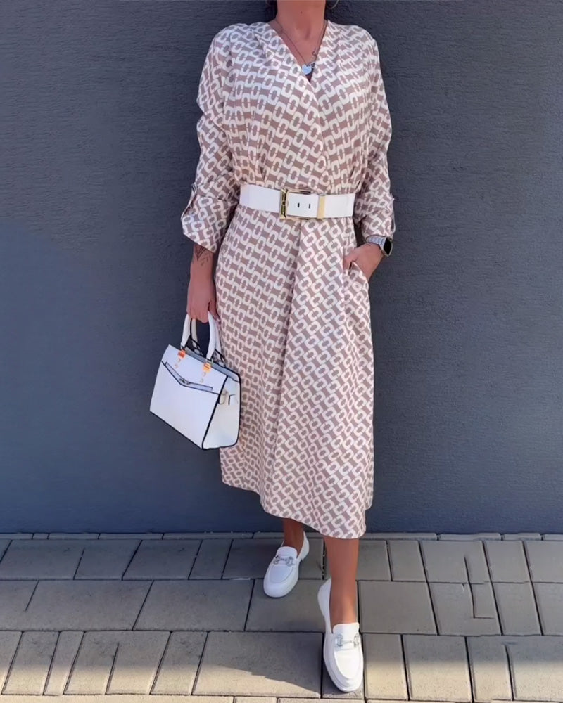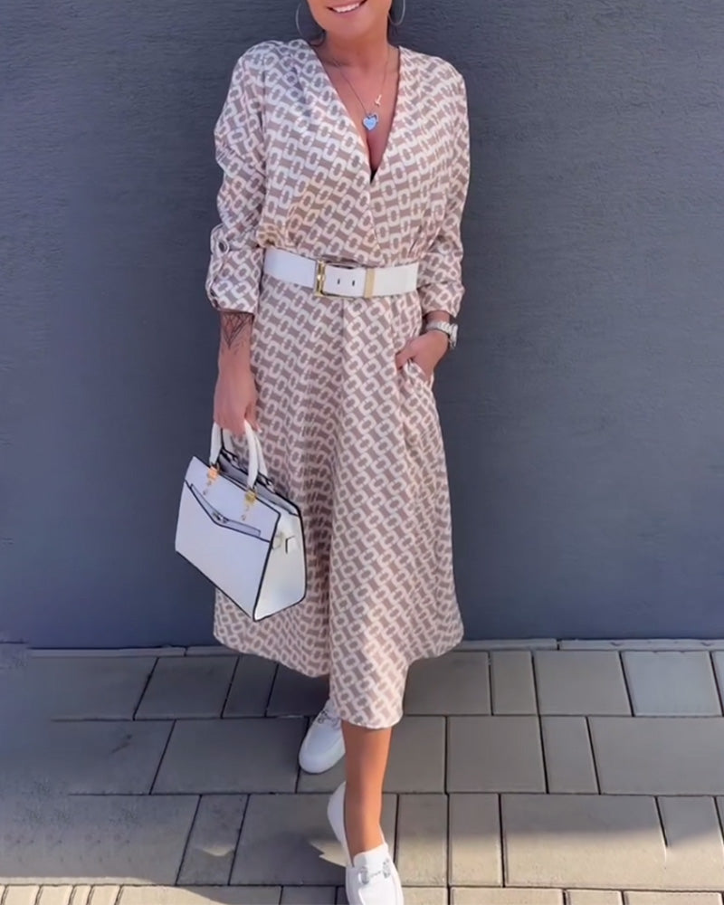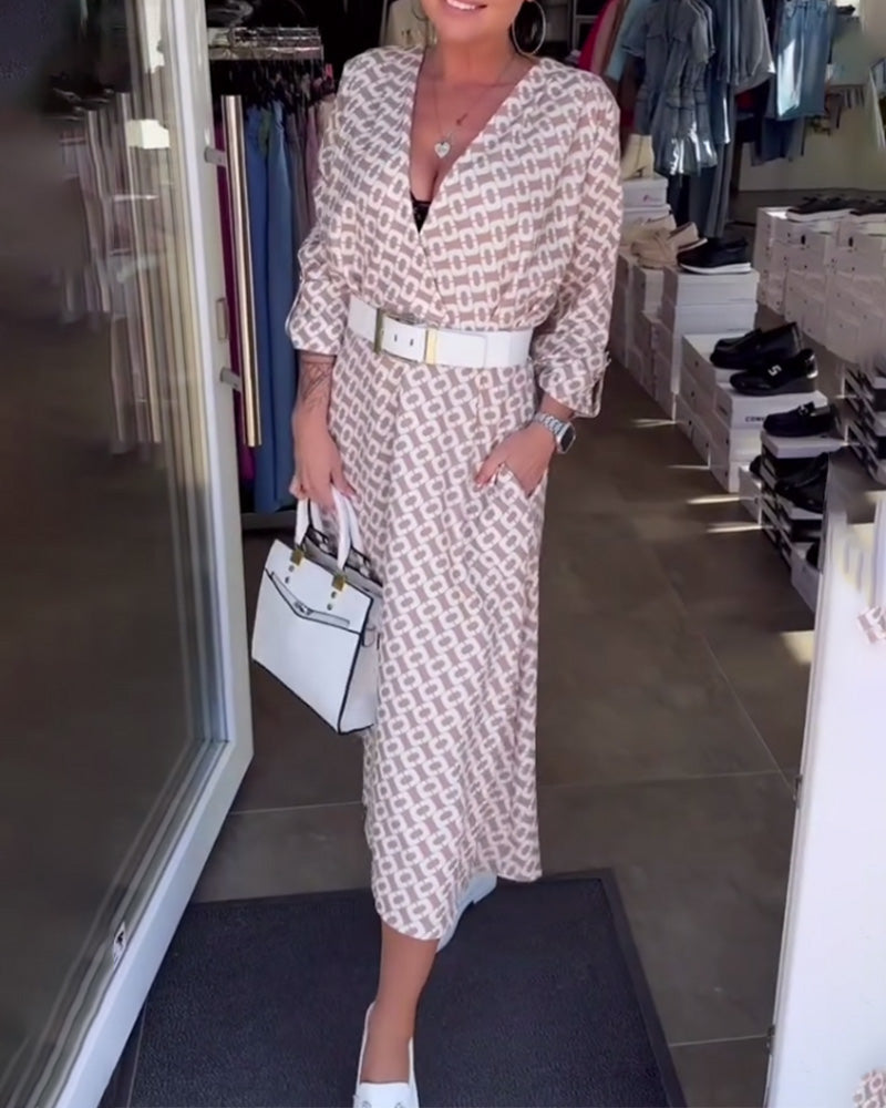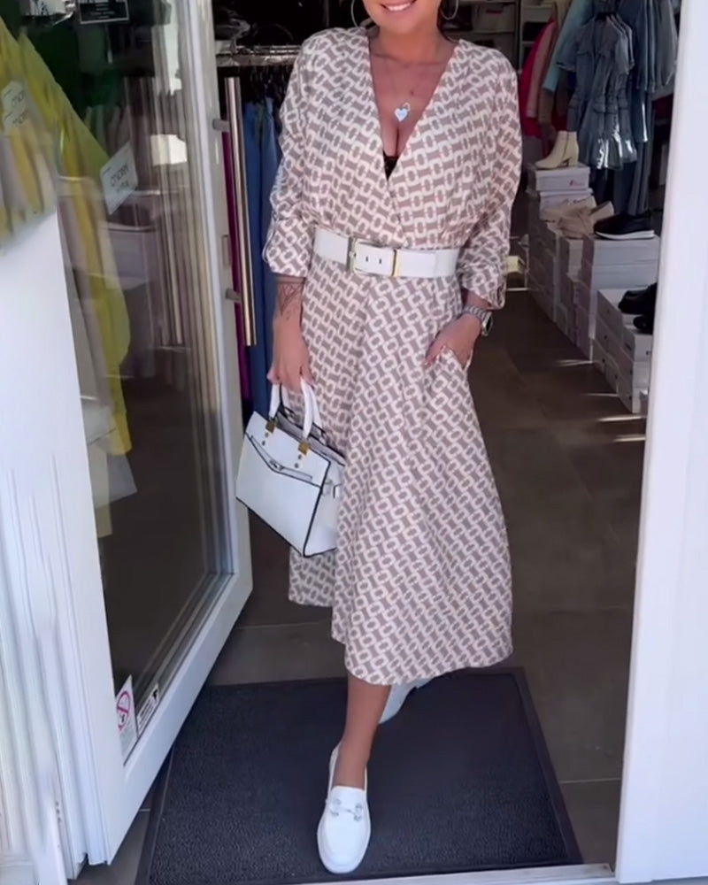 Robe Manches Longues Col V Profond Imprimée