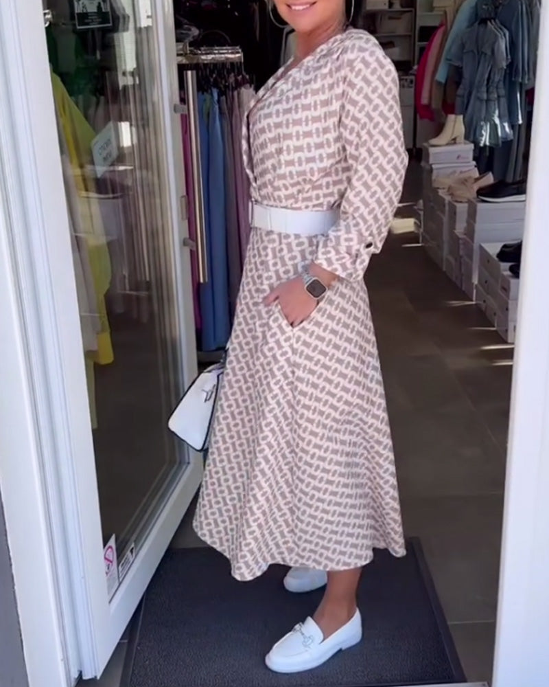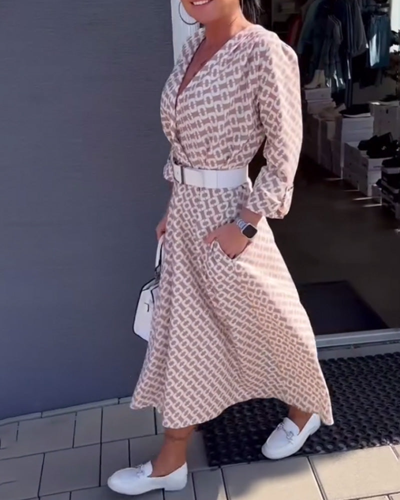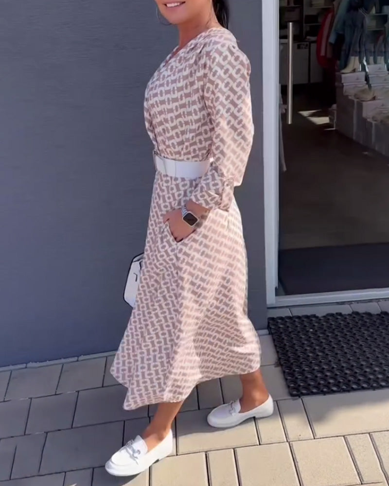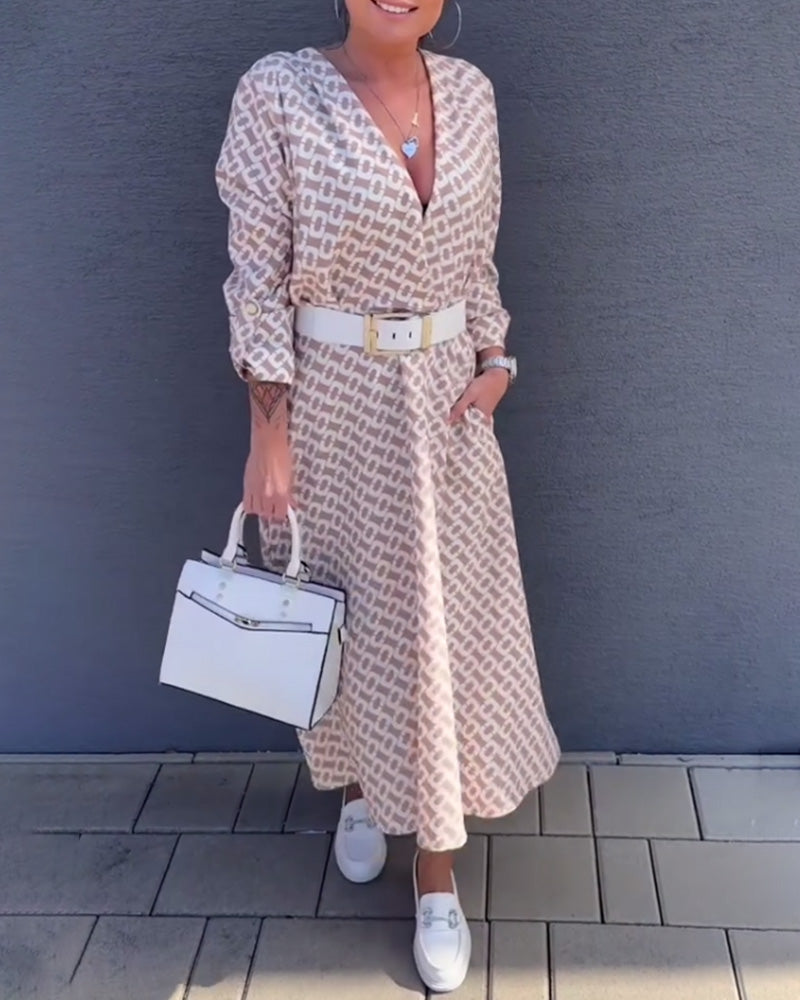 Robe Manches Longues Col V Profond Imprimée