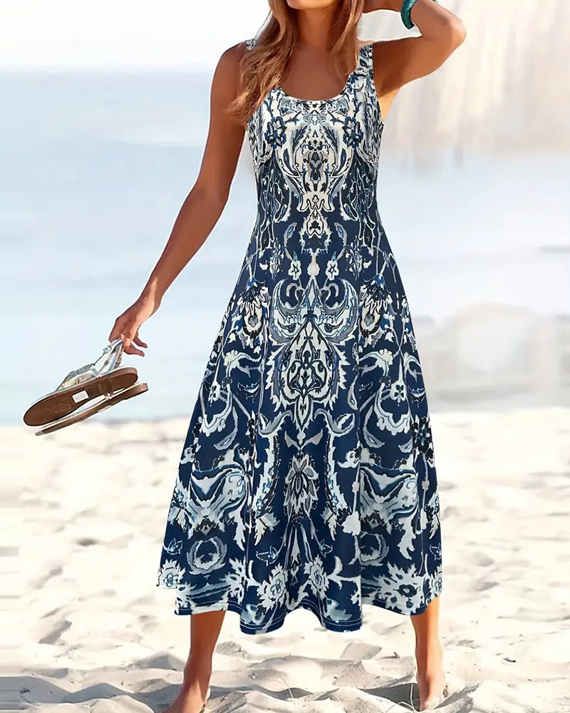 Robe Vacances Sans Manches Imprimé Tendance