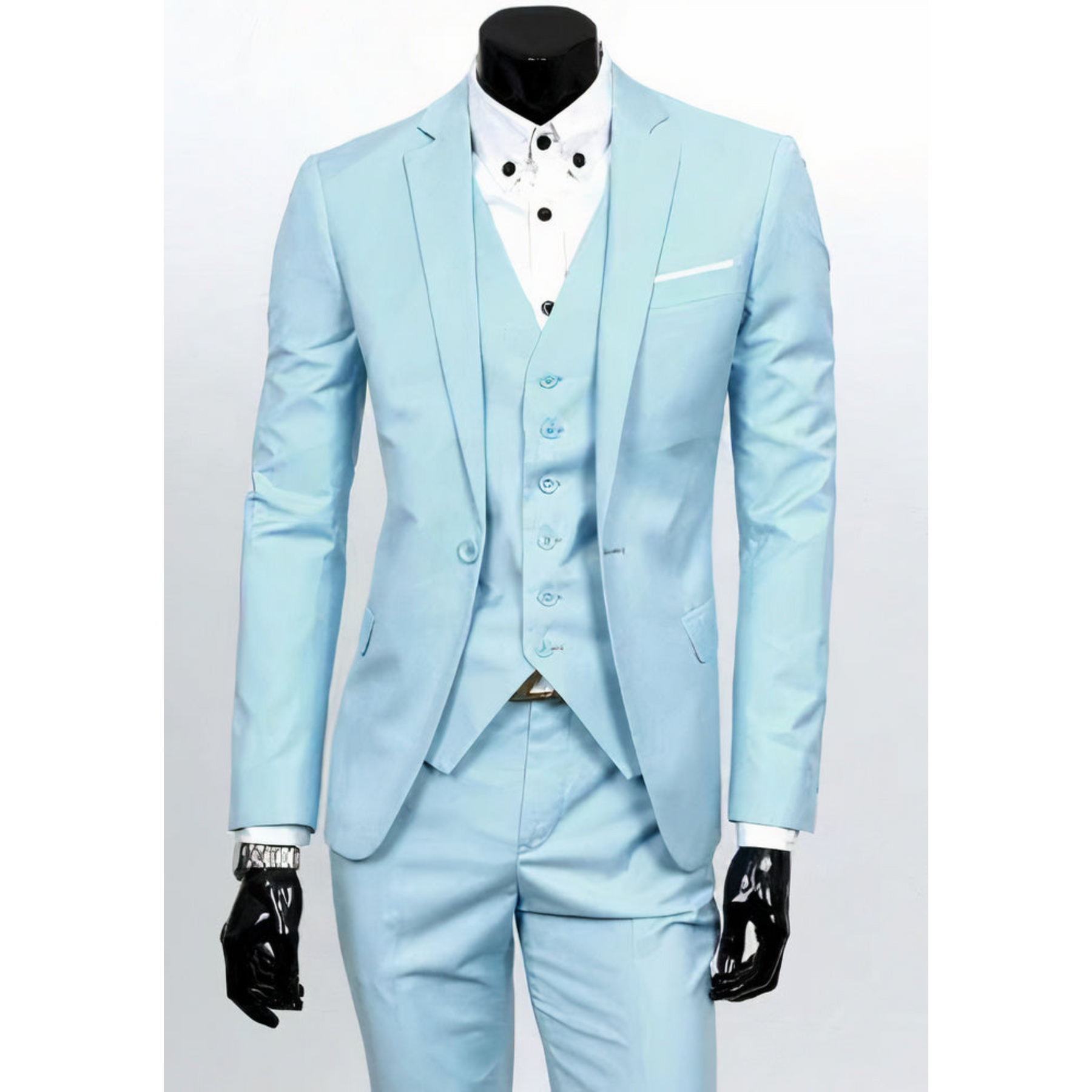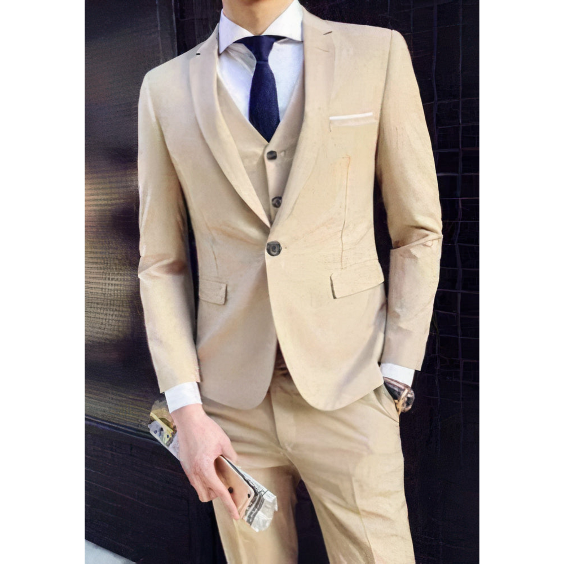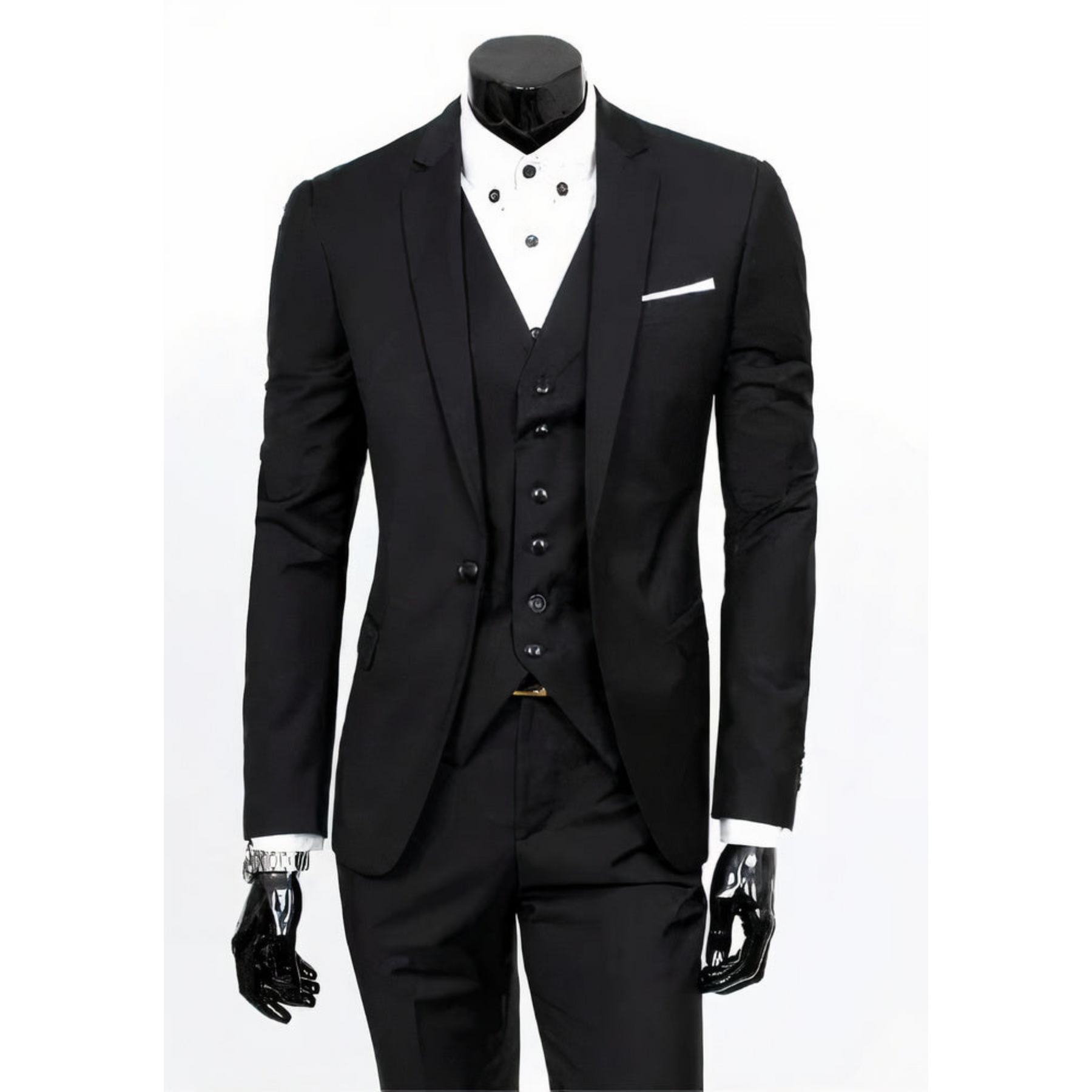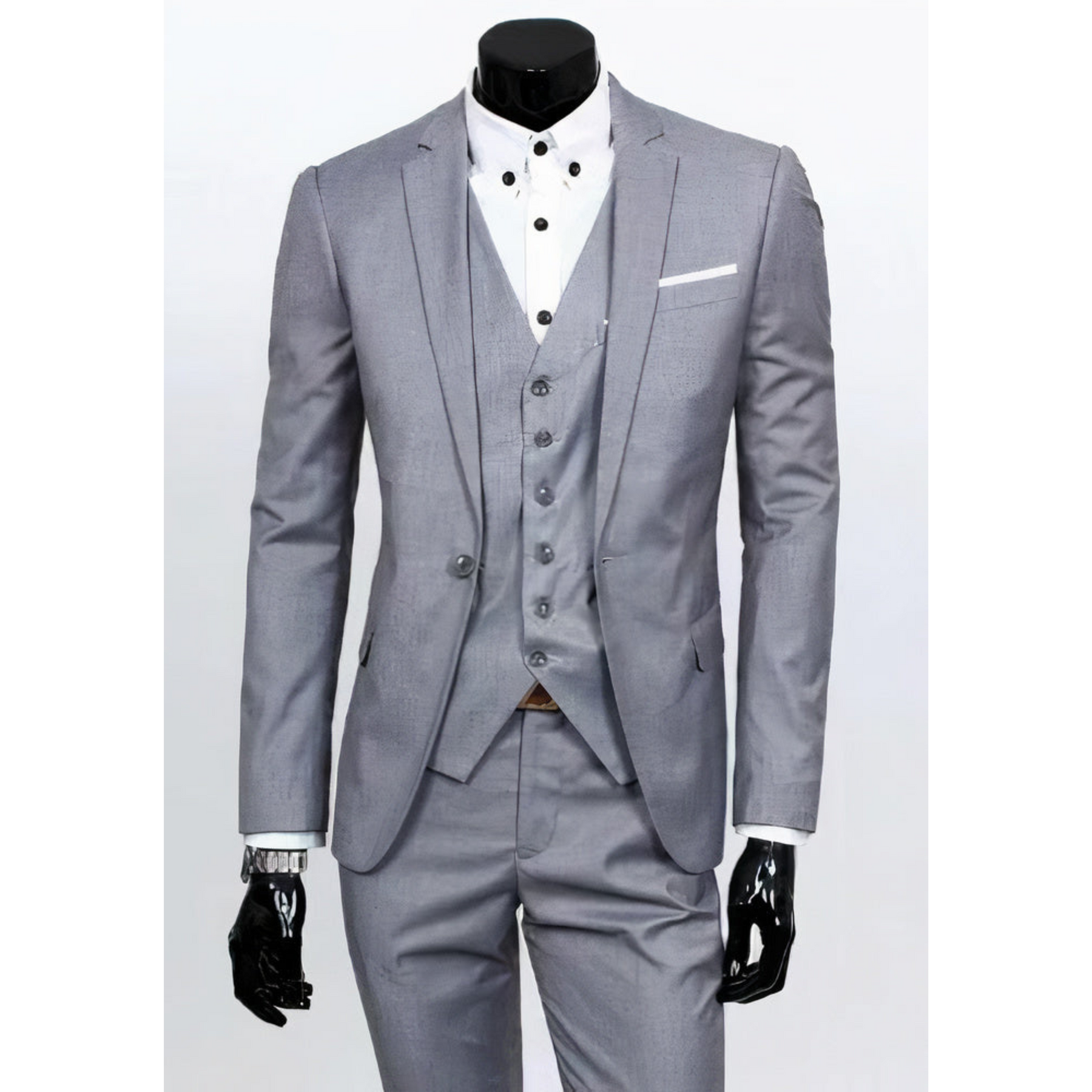 - Ensemble complet : composé d'une veste, d'un gilet et d'un pantalon parfaitement assortis.
