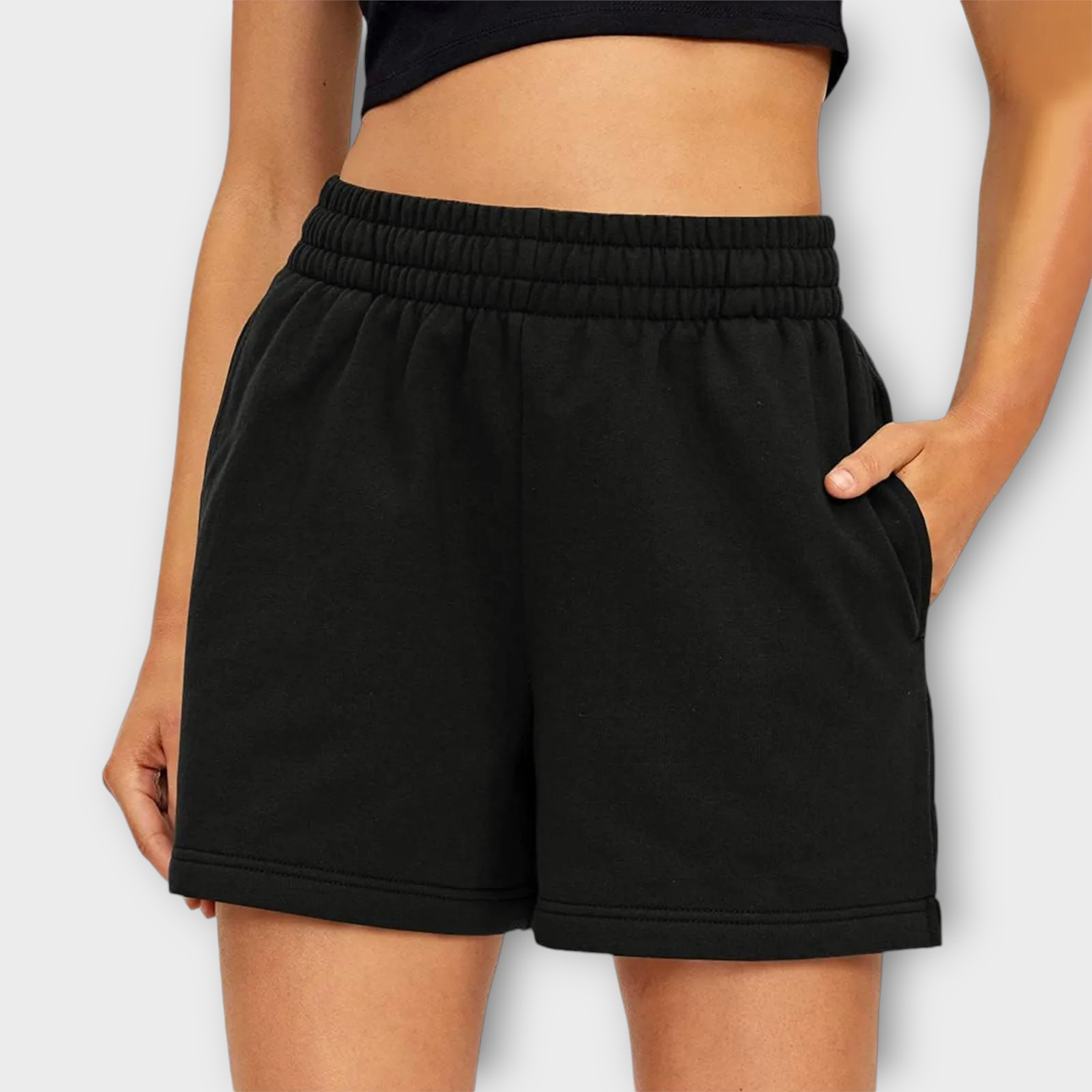 Ce short de sport pour femme est conçu avec une taille haute et une ceinture élastique pour un ajustement sûr et confortable. Sa coupe ample favorise la liberté de mouvement, tandis qu’une petite poche fonctionnelle permet de ranger de petits objets.