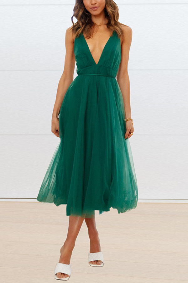 Sofia – Robe Midi en Tulle avec Décolleté en V Romantique