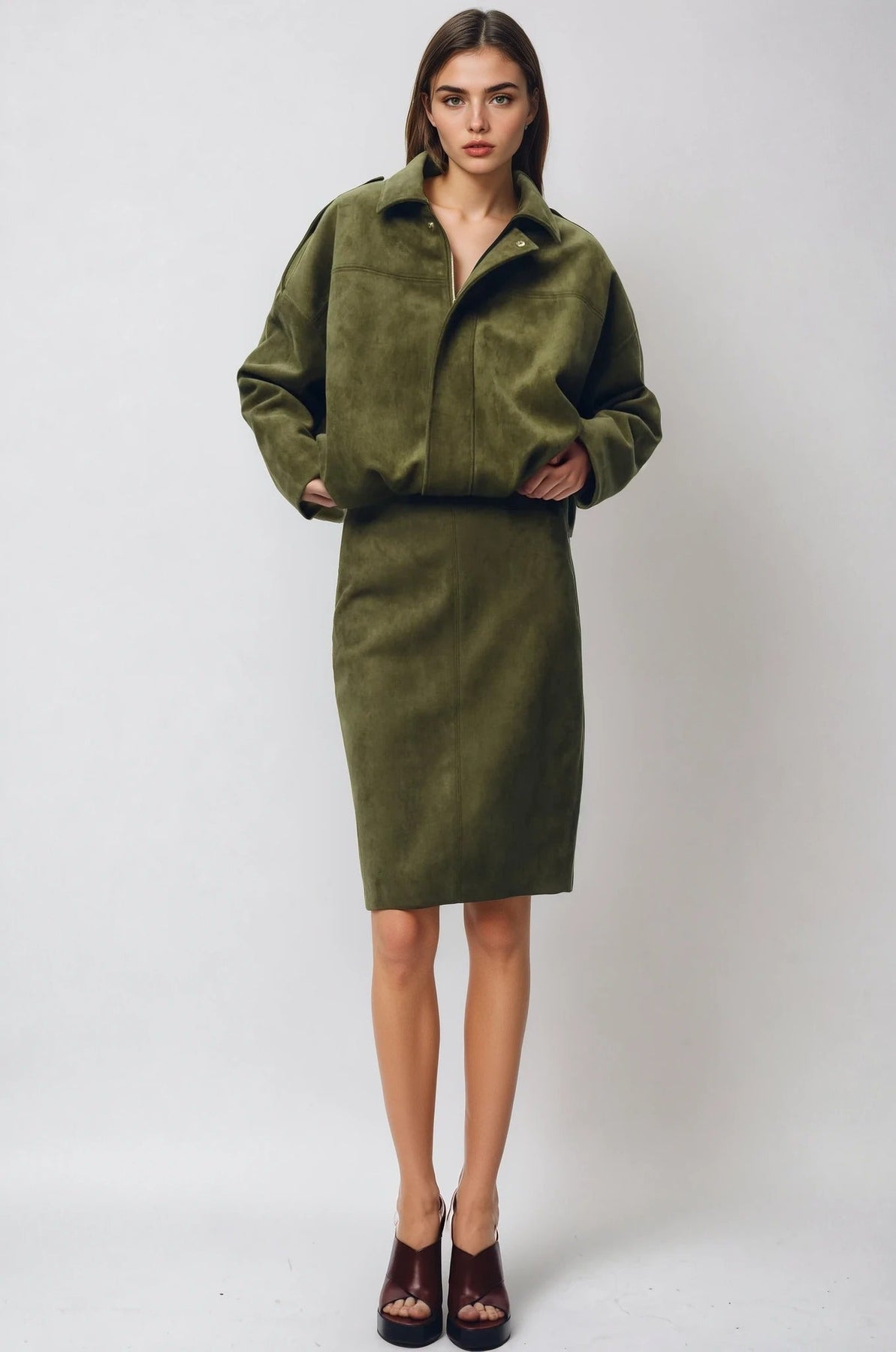 Cette élégante veste pilote à manches chauve-souris allie parfaitement confort et style. Le matériau en daim doux offre une touche de luxe, tandis que la coupe ample assure un look décontracté et à la mode.