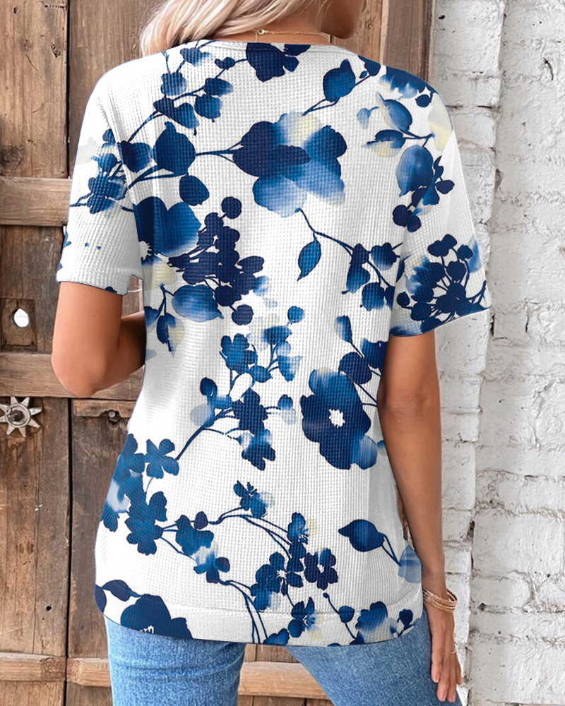 T-shirt col V Imprimé Gaufre Pli Croisé