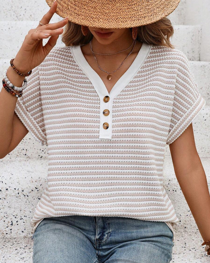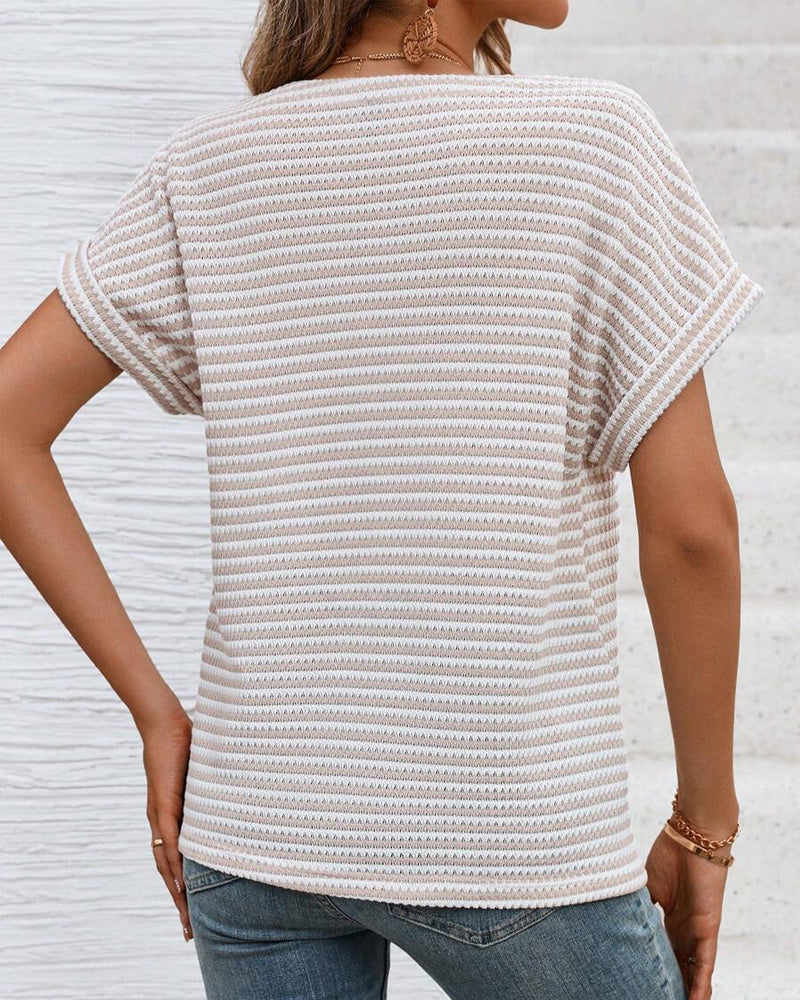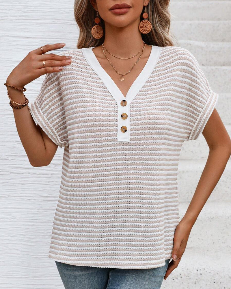 T-Shirt Mode Col En V Manches Courtes