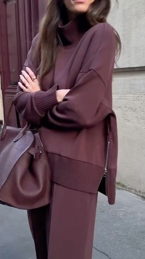 Update your everyday look with the Jessy Knit Co-ord Set, the perfect blend of comfort and style. This set features a refined knit turtleneck and matching wide-leg pants with on-trend detailing for effortless elegance. Made from a soft and breathable knit, it’s perfect for any occasion: from a casual day out to a lazy day at home or a cozy brunch with your besties.