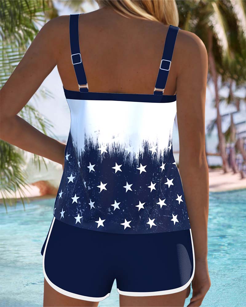 Tankini Drapeau Américain Imprimé Cœur Deux Pièces