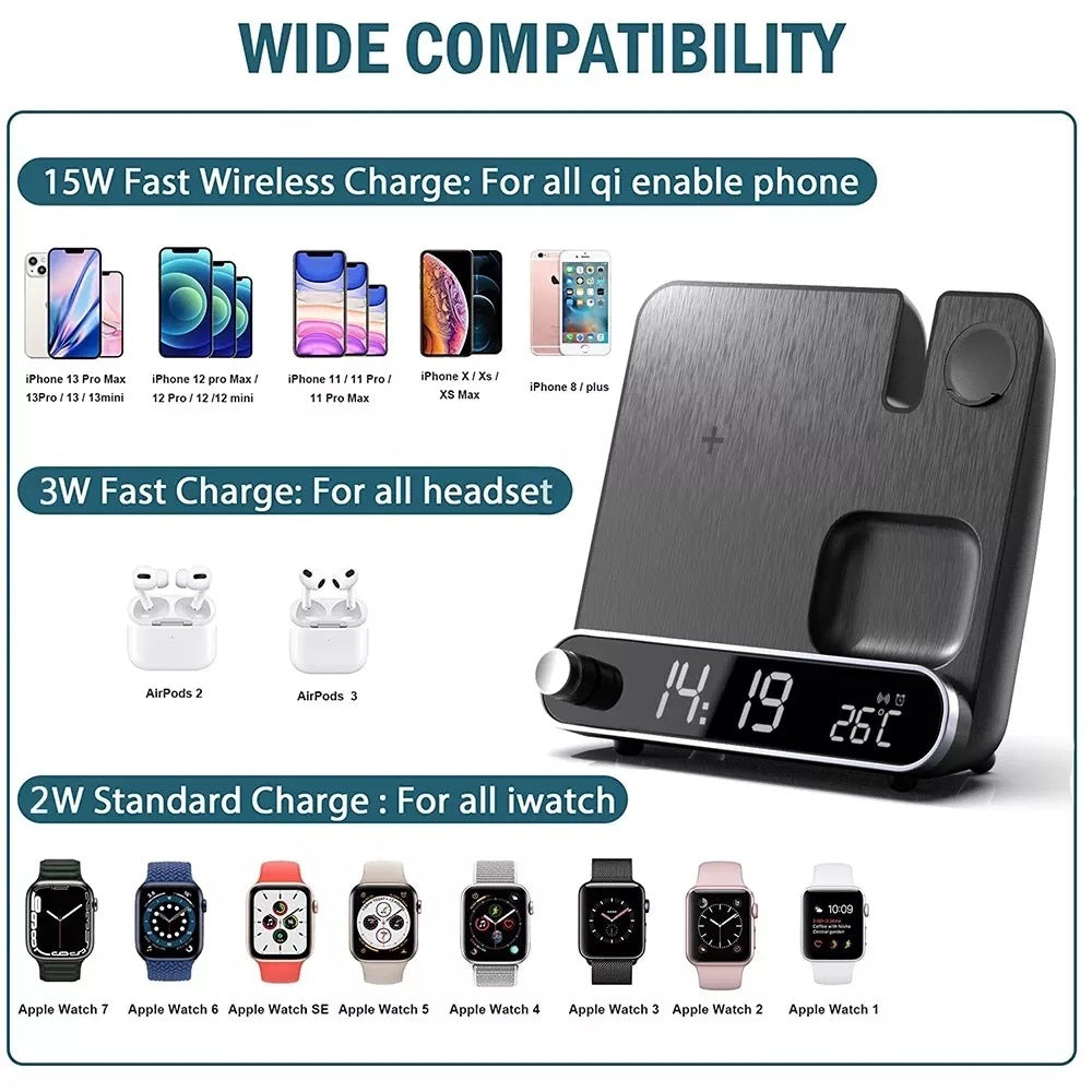 Faites de vos matins une expérience grâce à notre réveil sans fil innovant trois-en-un avec chargement sans fil ! Cet appareil multifonctionnel allie la fonctionnalité d'un réveil à la commodité du chargement sans fil. Oubliez les câbles gênants, placez simplement vos appareils rechargeables sans fil dans la base et réveillez-vous complètement chargé. Les réglages de l'alarme sont personnalisables et le design moderne s'adapte à toutes les pièces. Simplifiez votre routine matinale et rechargez efficacement vos appareils grâce à ce réveil trois-en-un qui allie style et technologie avancée.