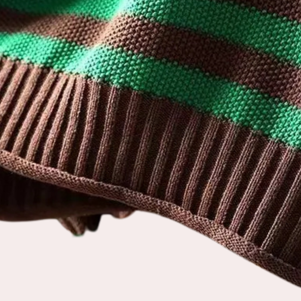 Le pull Ulrika associe une coupe ample à un motif rayé moderne, offrant un look à la fois décontracté et tendance. Sa conception légère permet un port confortable, idéal pour un style quotidien en été.