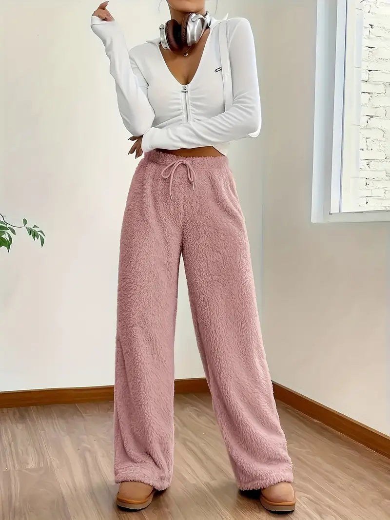 Vaneheo | Pantalon en peluche taille haute pour femmes