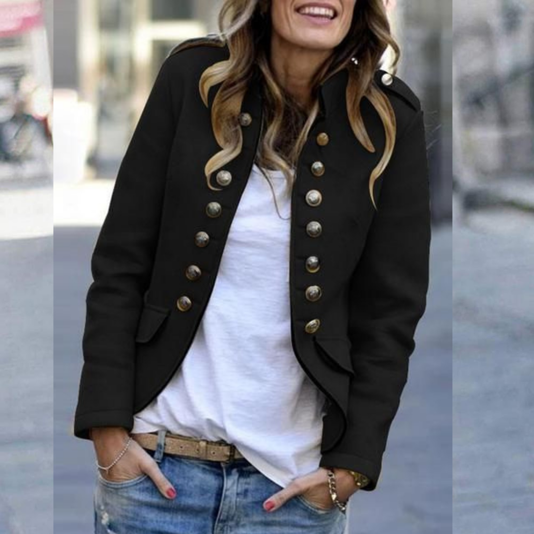 - Fermeture à boutons – Détails discrets pour une finition soignée.