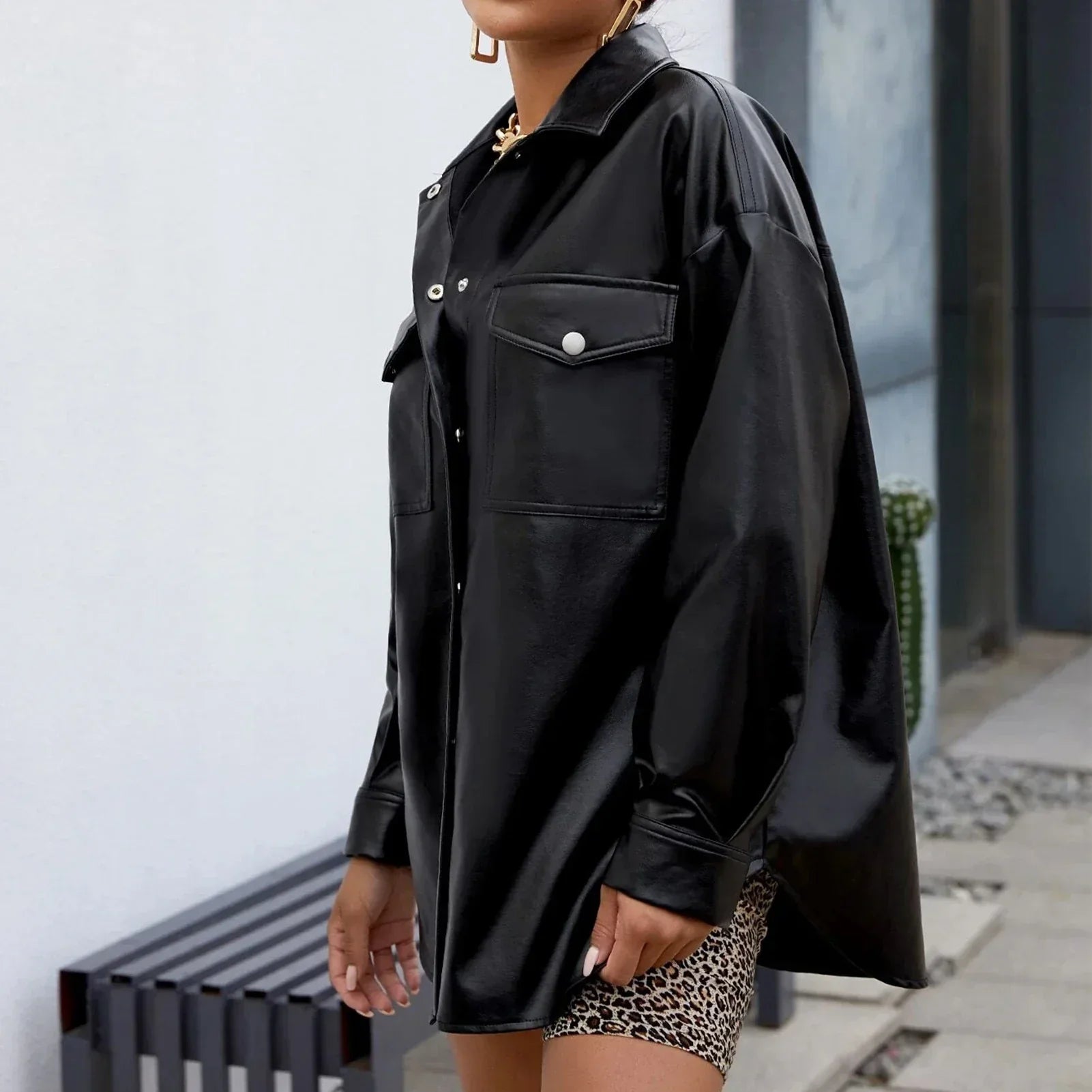 Cette veste boutonnée pour femmes allie confort et style avec ses revers élégants et ses poches poitrine pratiques. Sa coupe relaxée permet une grande liberté de mouvement tout en offrant un look soigné.