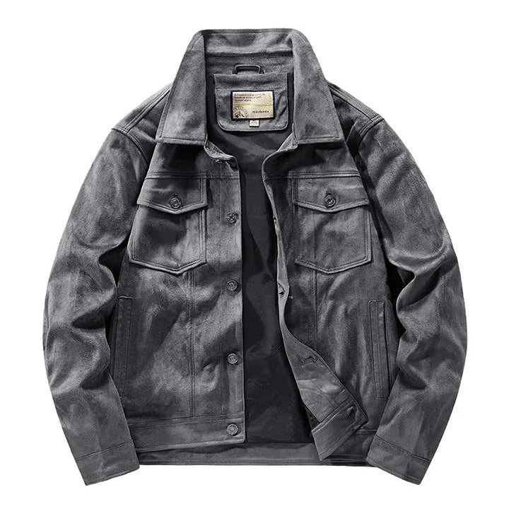 La veste en daim Jerry allie élégance classique et praticité. Son matériau en daim doux offre une sensation luxueuse, tandis que les multiples poches et la fermeture à boutons ajoutent fonctionnalité et raffinement. Idéale pour ajouter une touche de sophistication à toute tenue.