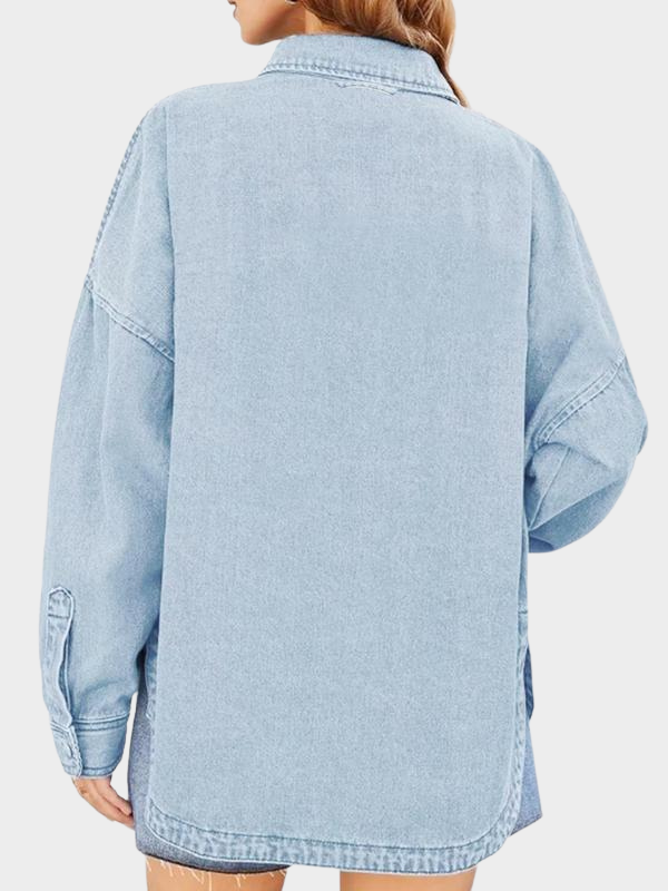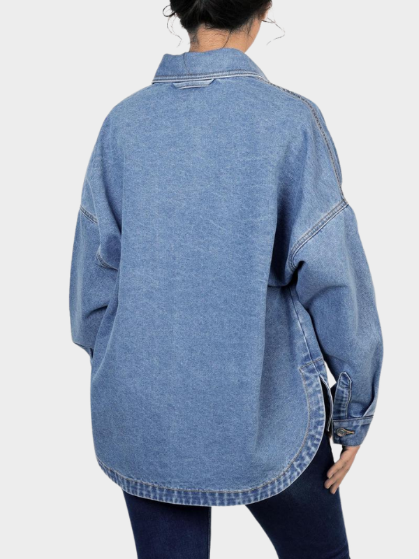 Veste en jean pour femme avec boutons et ourlet arrondi – Un classique intemporel